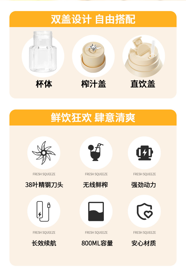 功能 榨汁 碎冰 便携 搅拌 无线便携