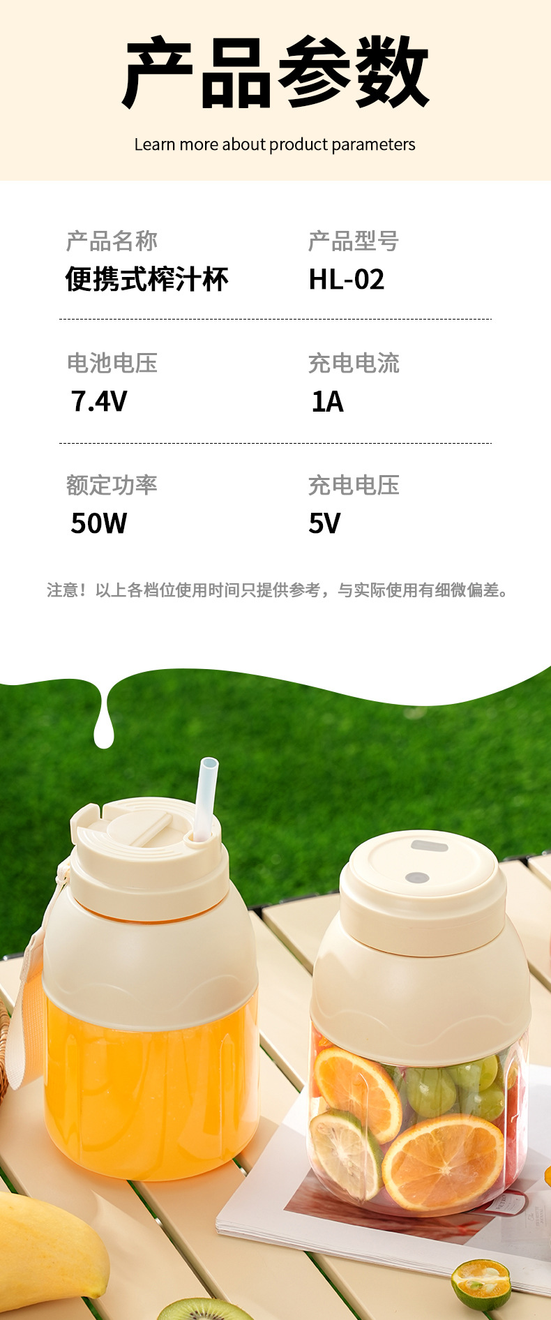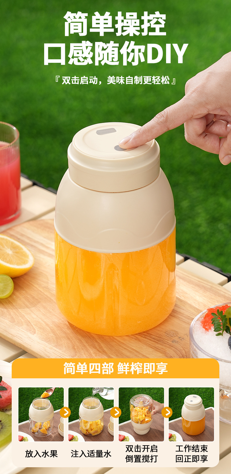 跨境新款榨汁杯电动便捷式充电小型果汁杯家用大容量果汁榨汁机