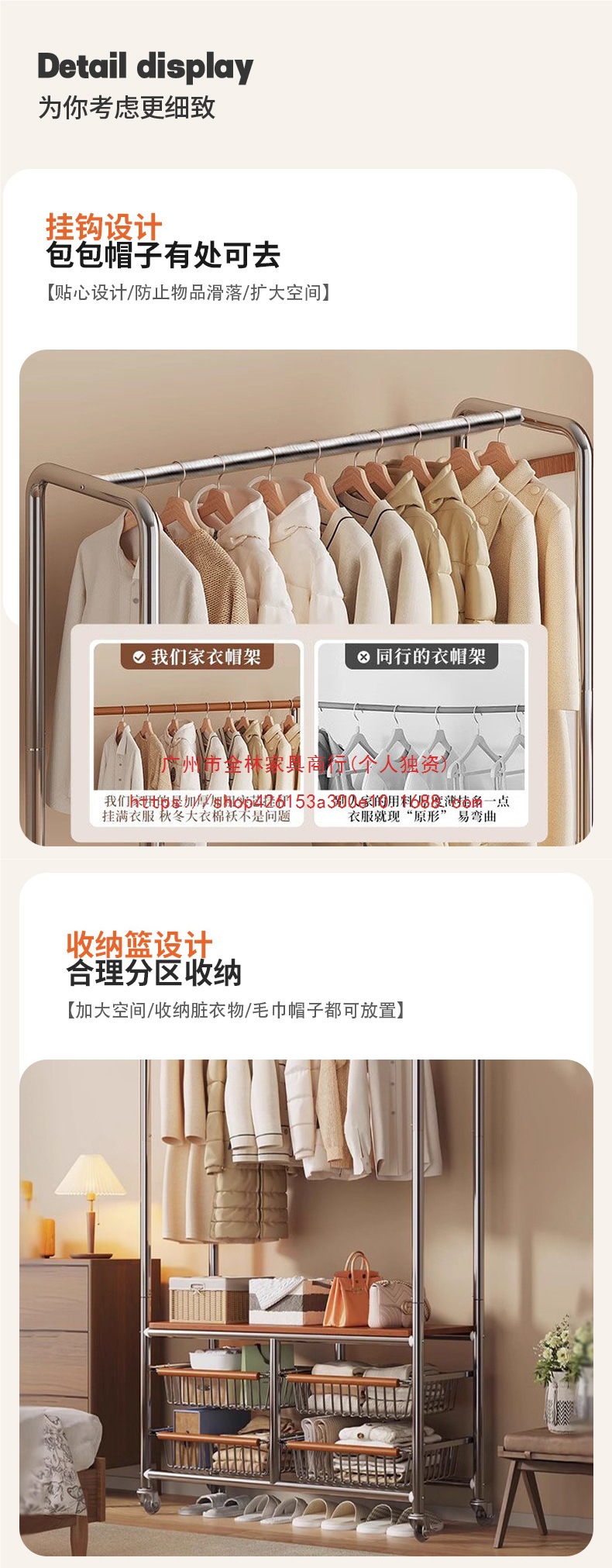 轻奢晾衣架抽屉卧室挂衣架落地中古衣服收纳可移动家用衣帽架多层