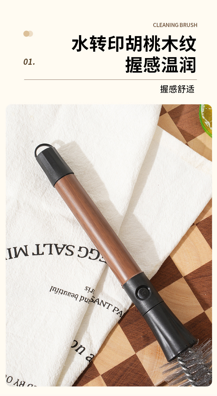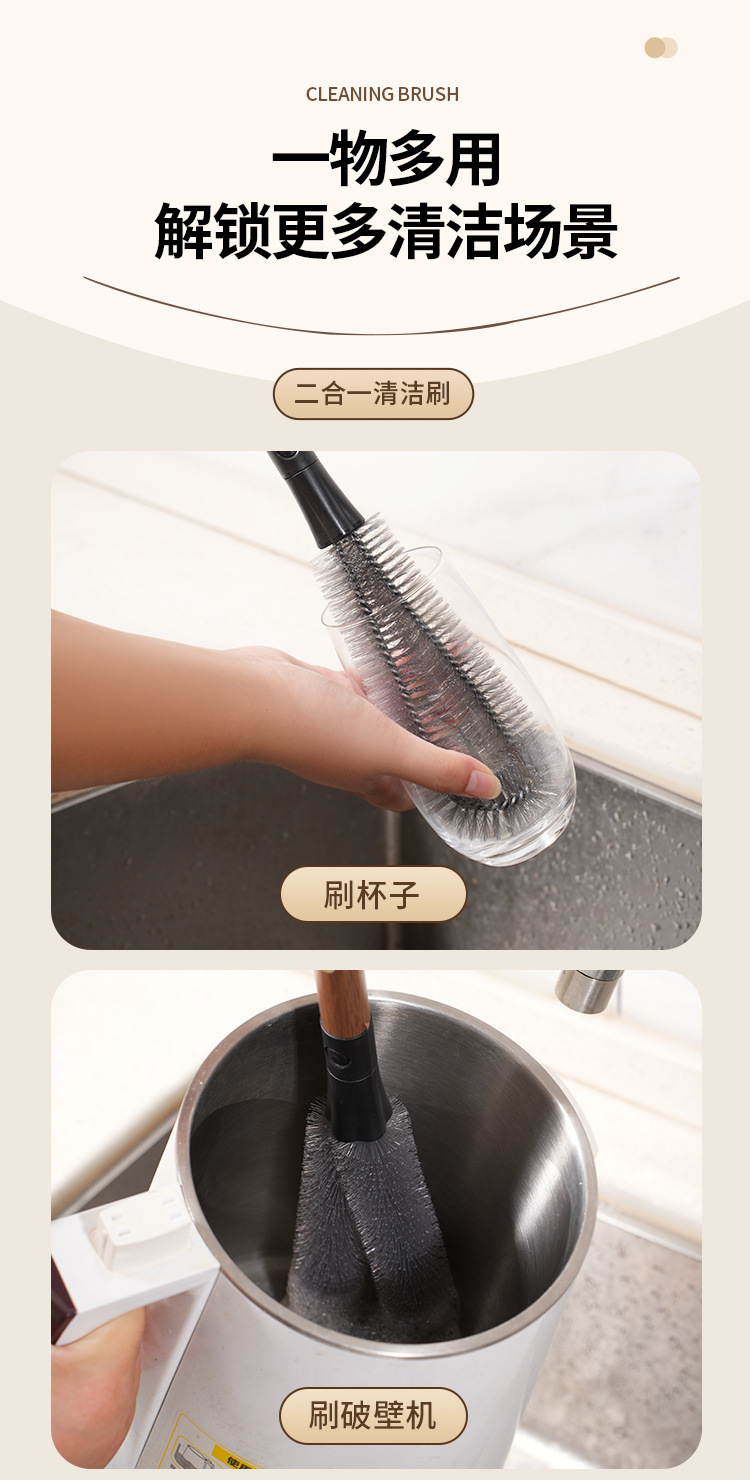 二合一杯刷清洁工具可杯刷家用厨房用品刷壁挂多功能胡桃木纹杯刷