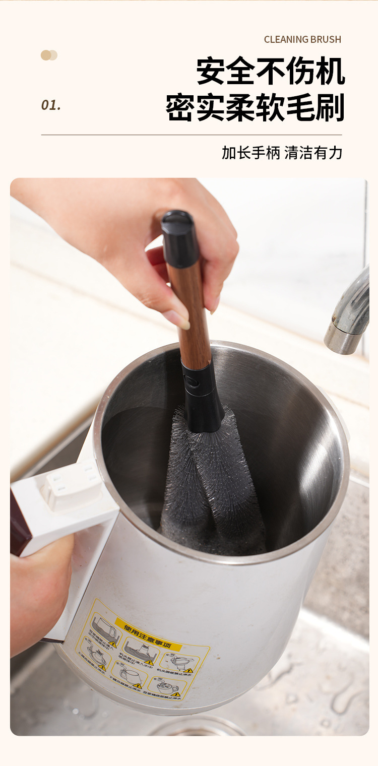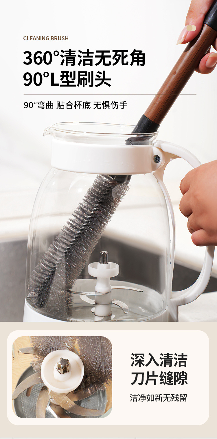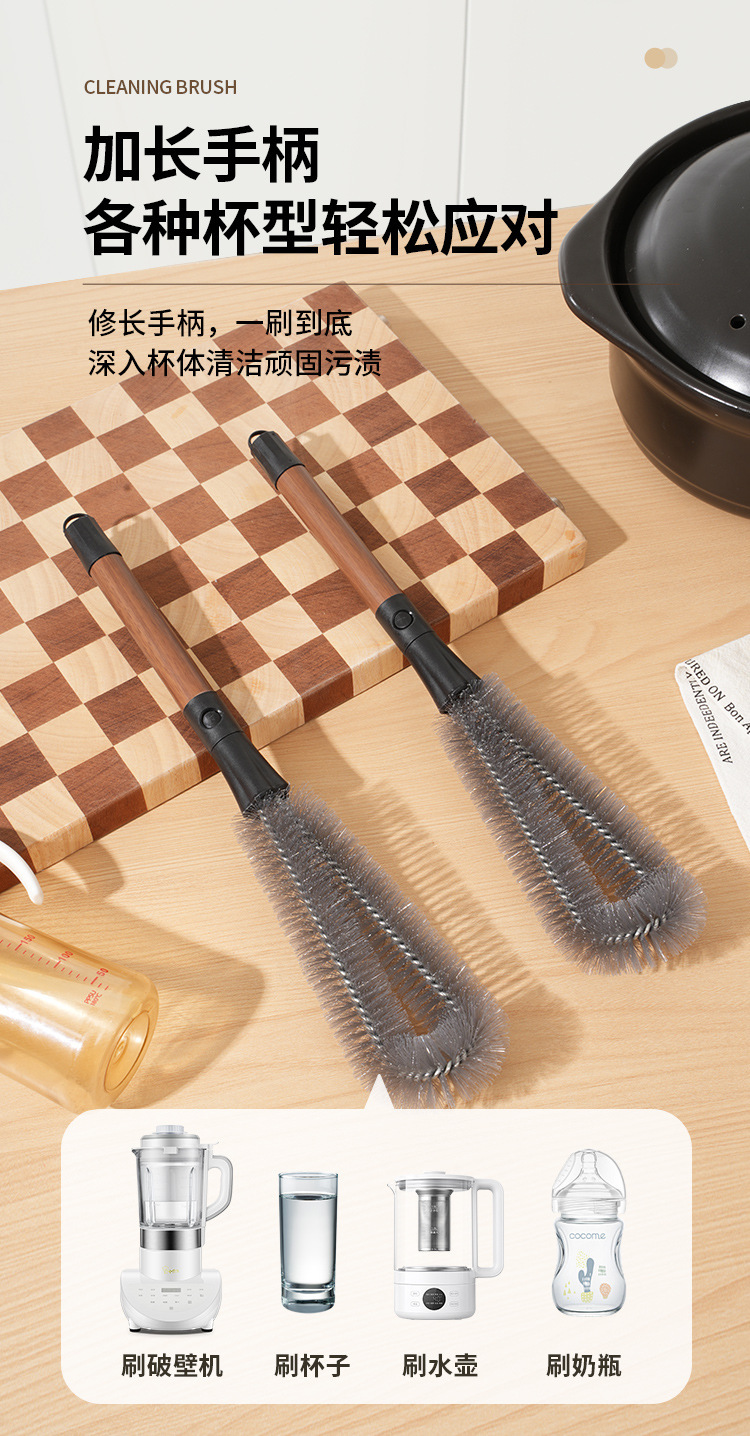 胡桃色二合一瓶口刷长柄可拆卸缝隙刷多功能软毛杯刷破壁机清洗刷