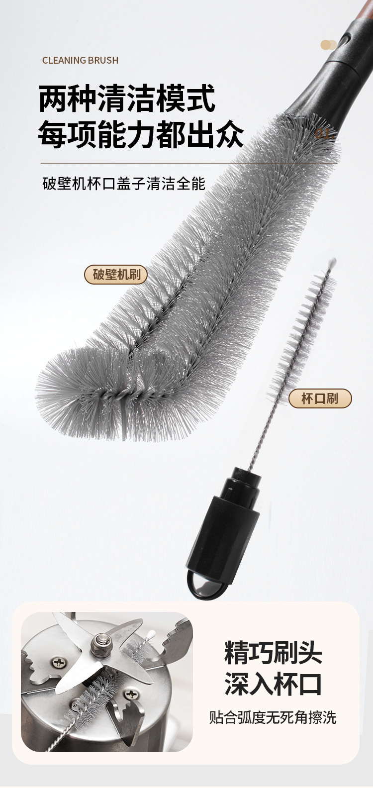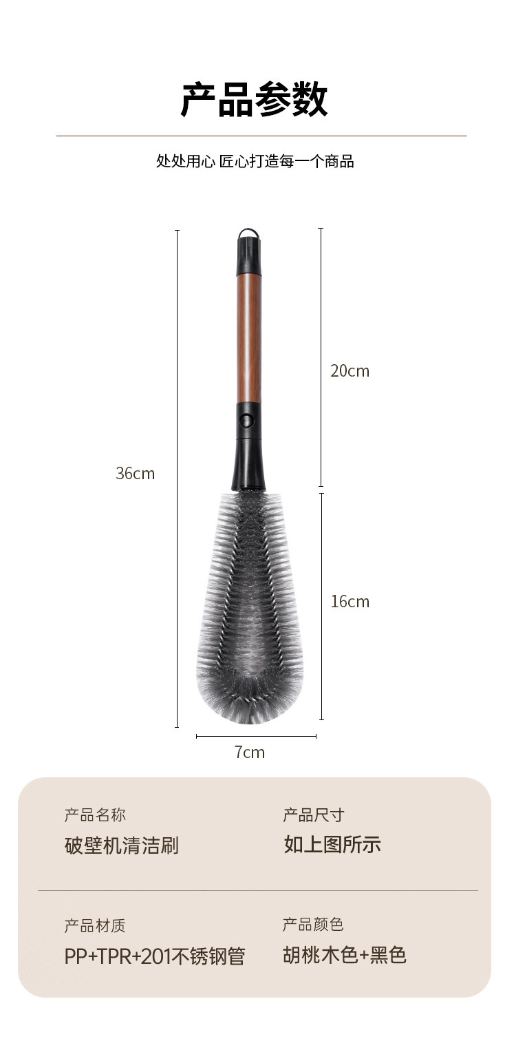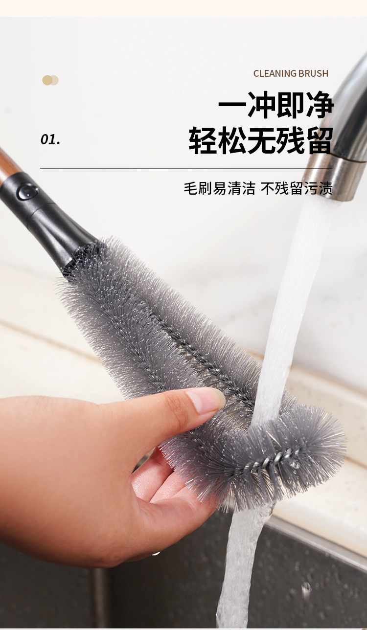 胡桃色二合一瓶口刷长柄可拆卸缝隙刷多功能软毛杯刷破壁机清洗刷