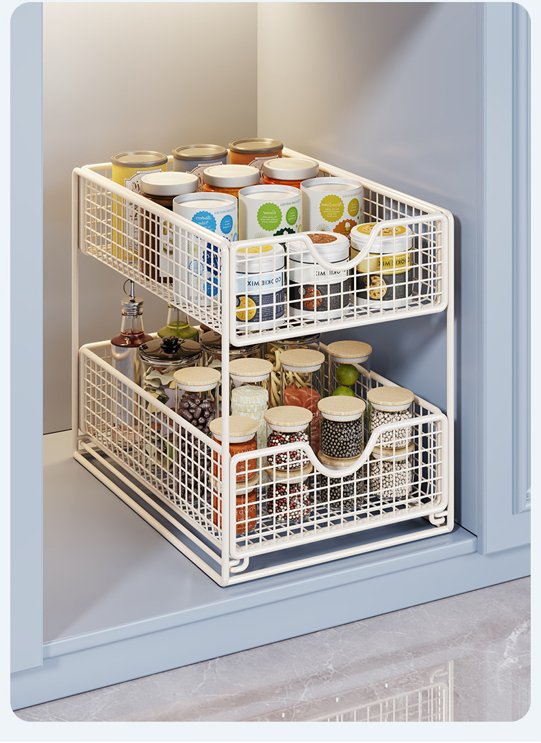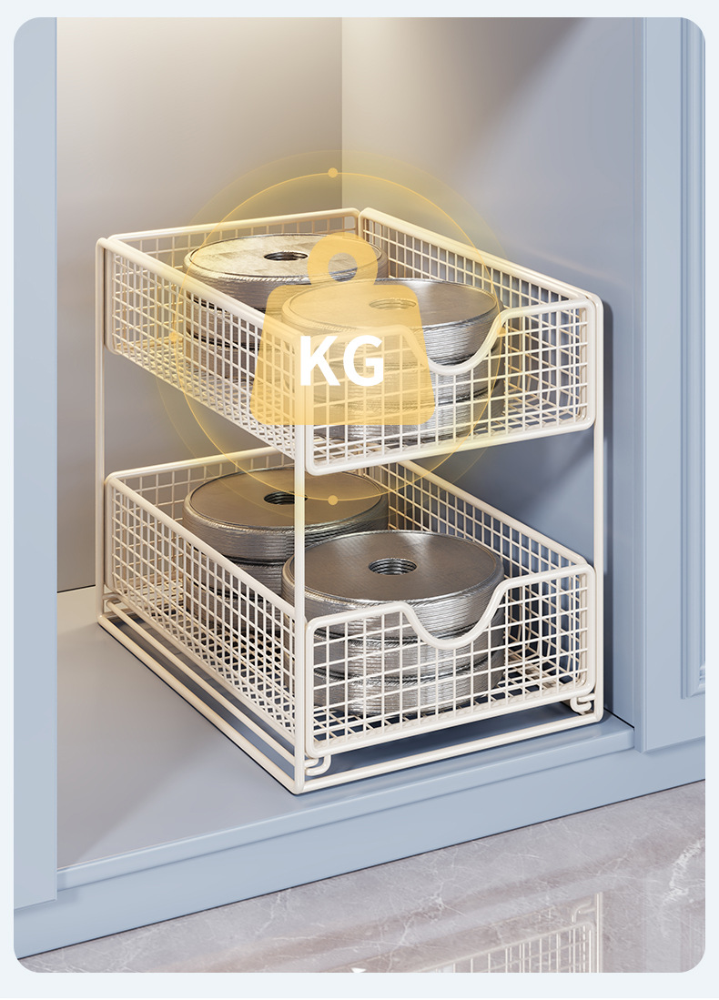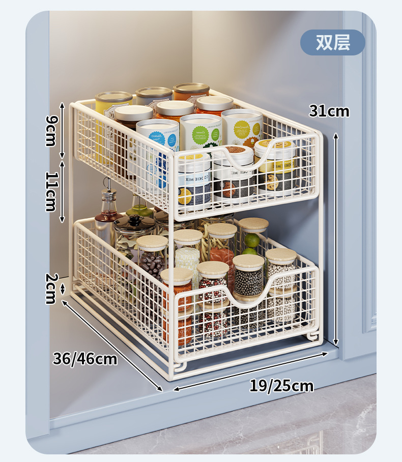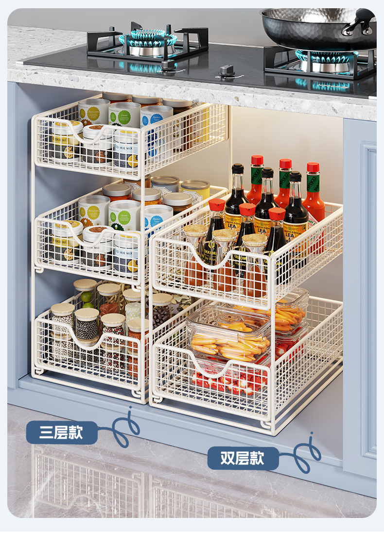 厨房下水置物架橱柜内分层拉篮柜子抽屉抽拉式双层收纳碗盘锅架