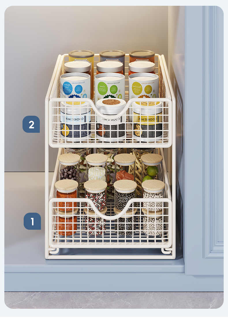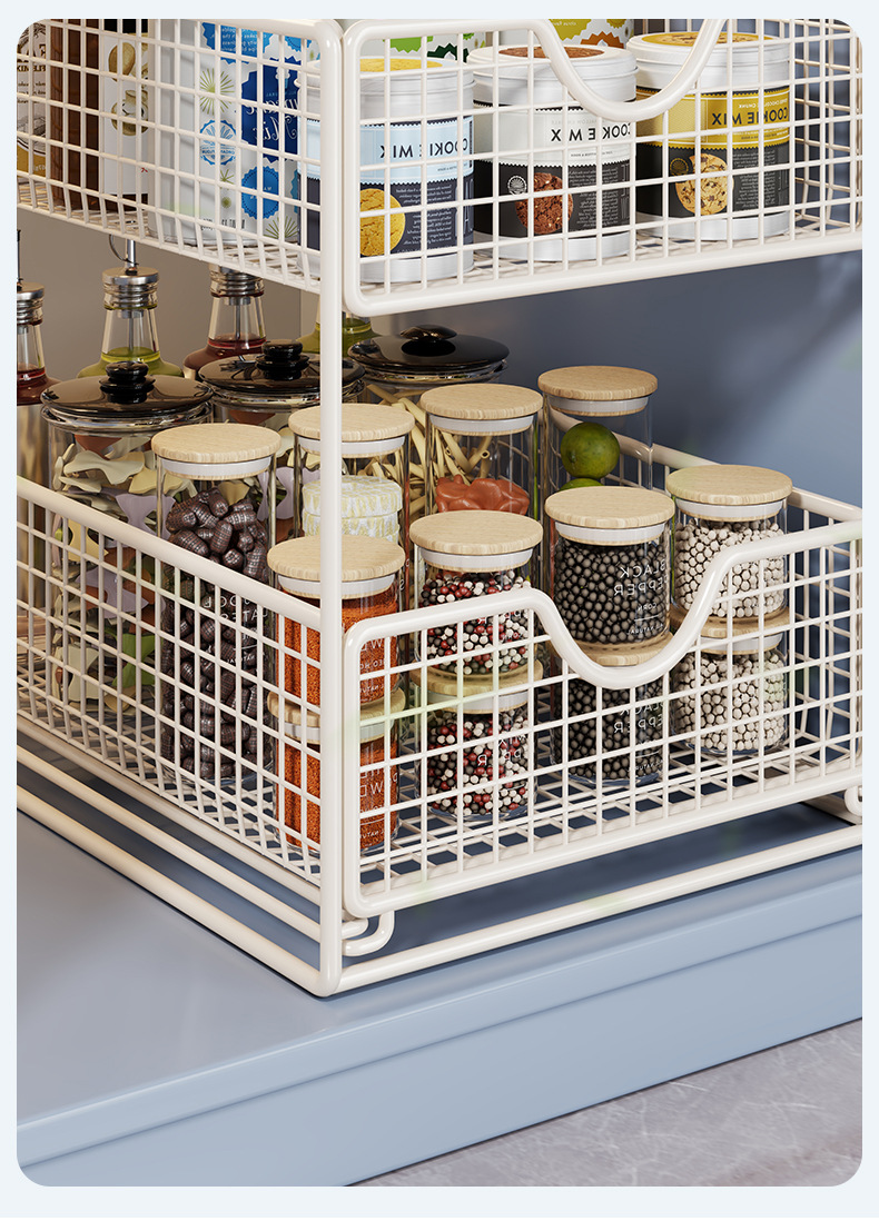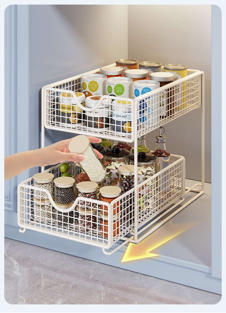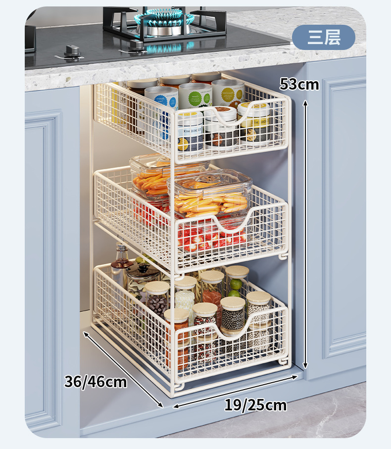 厨房下水置物架橱柜内分层拉篮柜子抽屉抽拉式双层收纳碗盘锅架
