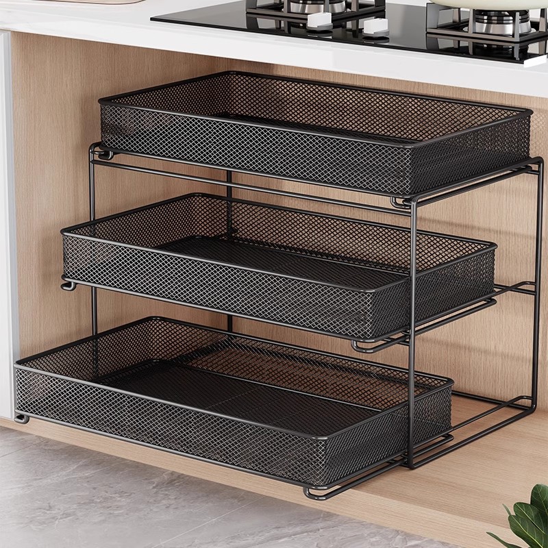 下水槽置物架浴室柜下抽拉式收纳盒分层架橱柜卫生间洗手台收纳篮