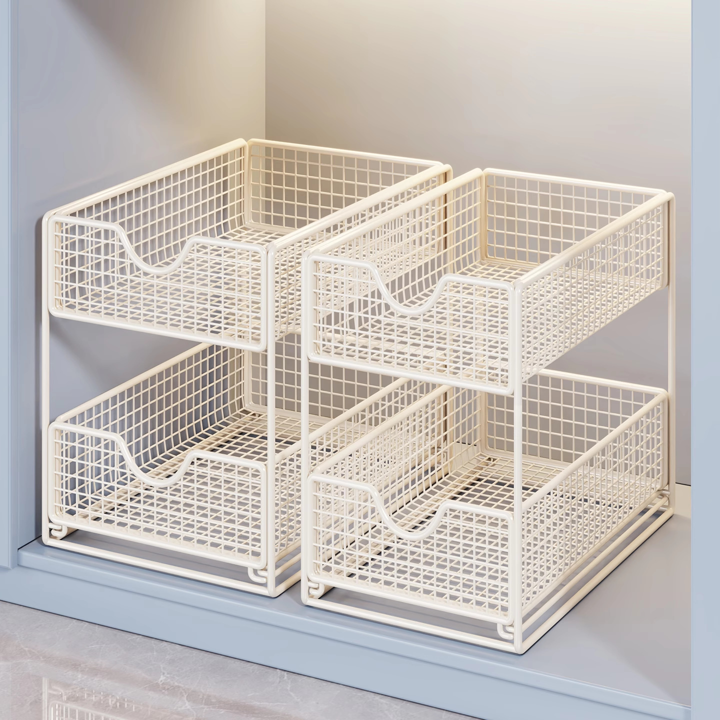 卫生间下水槽置物架抽拉式浴室柜下收纳筐厕所洗漱台橱柜内分层架