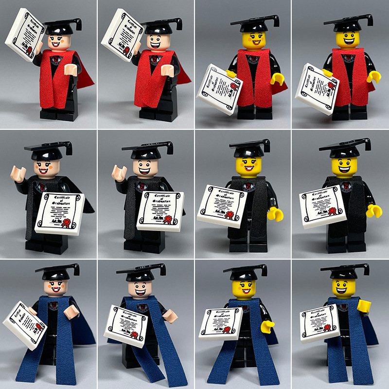 MOC人仔 小颗粒拼装积木 毕业生学士服学士帽 博士 硕士 跨境批发