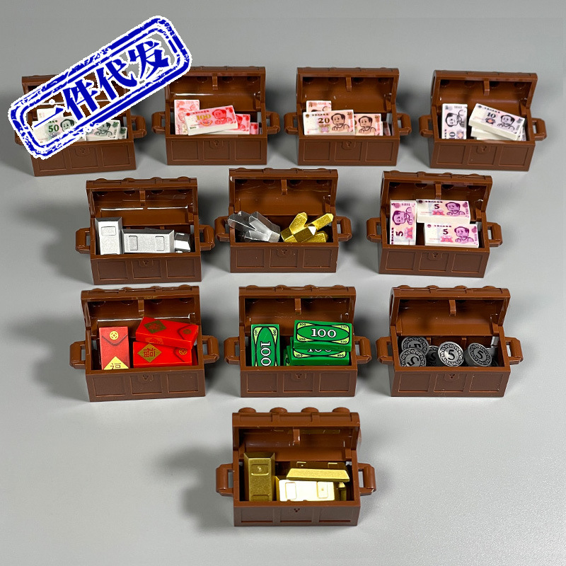 ドロップシッピング MOC 微粒子ビルディングブロックミニ紙幣コイン RMB 金鉱山金と銀の宝物ドル宝箱収納