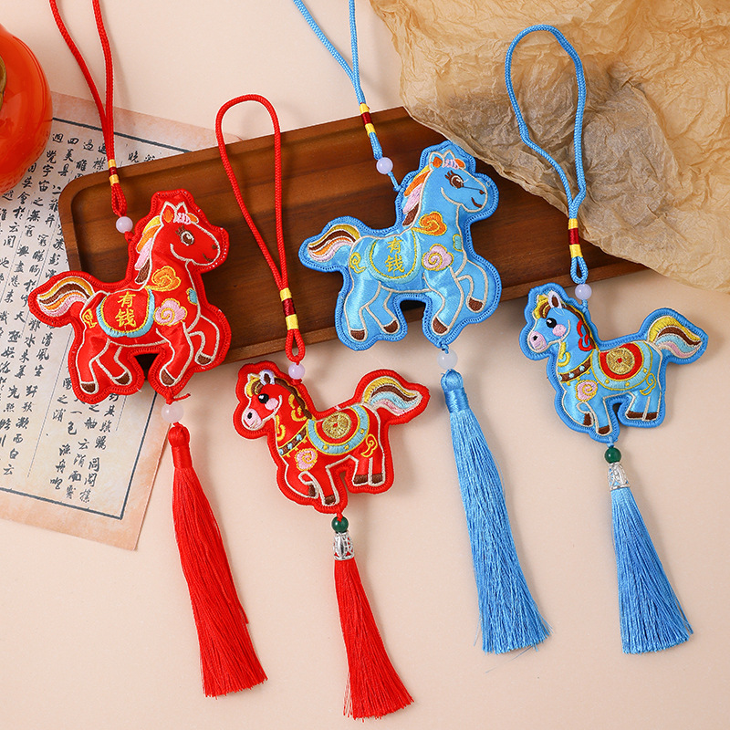 2026新款马年中国风香包香囊铃铛挂件中国红生肖香包流苏挂件车挂