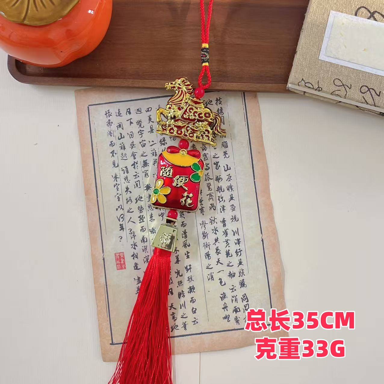 2026年生肖马盆栽小挂件新年小盆景装饰室内室外福字发财 树 挂饰