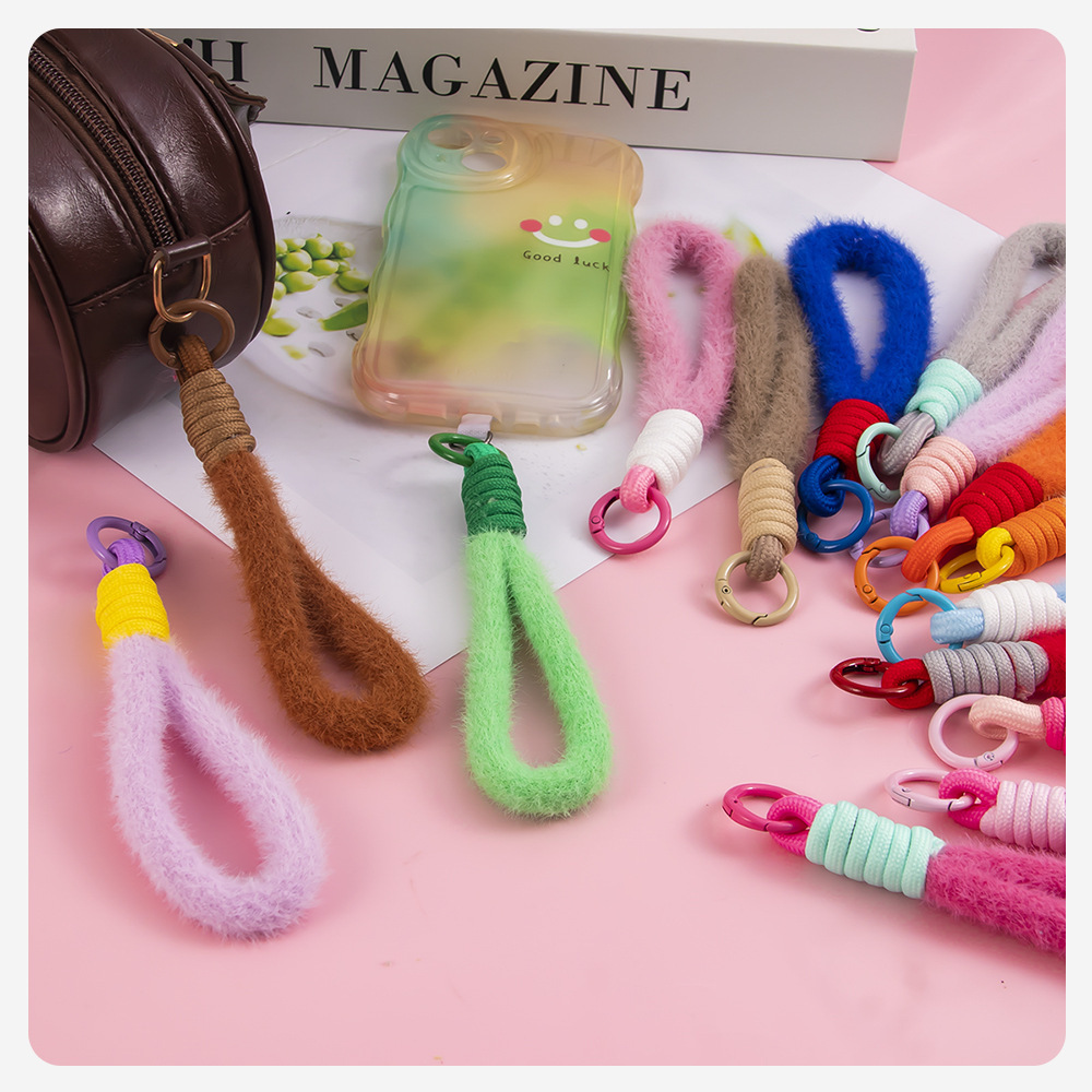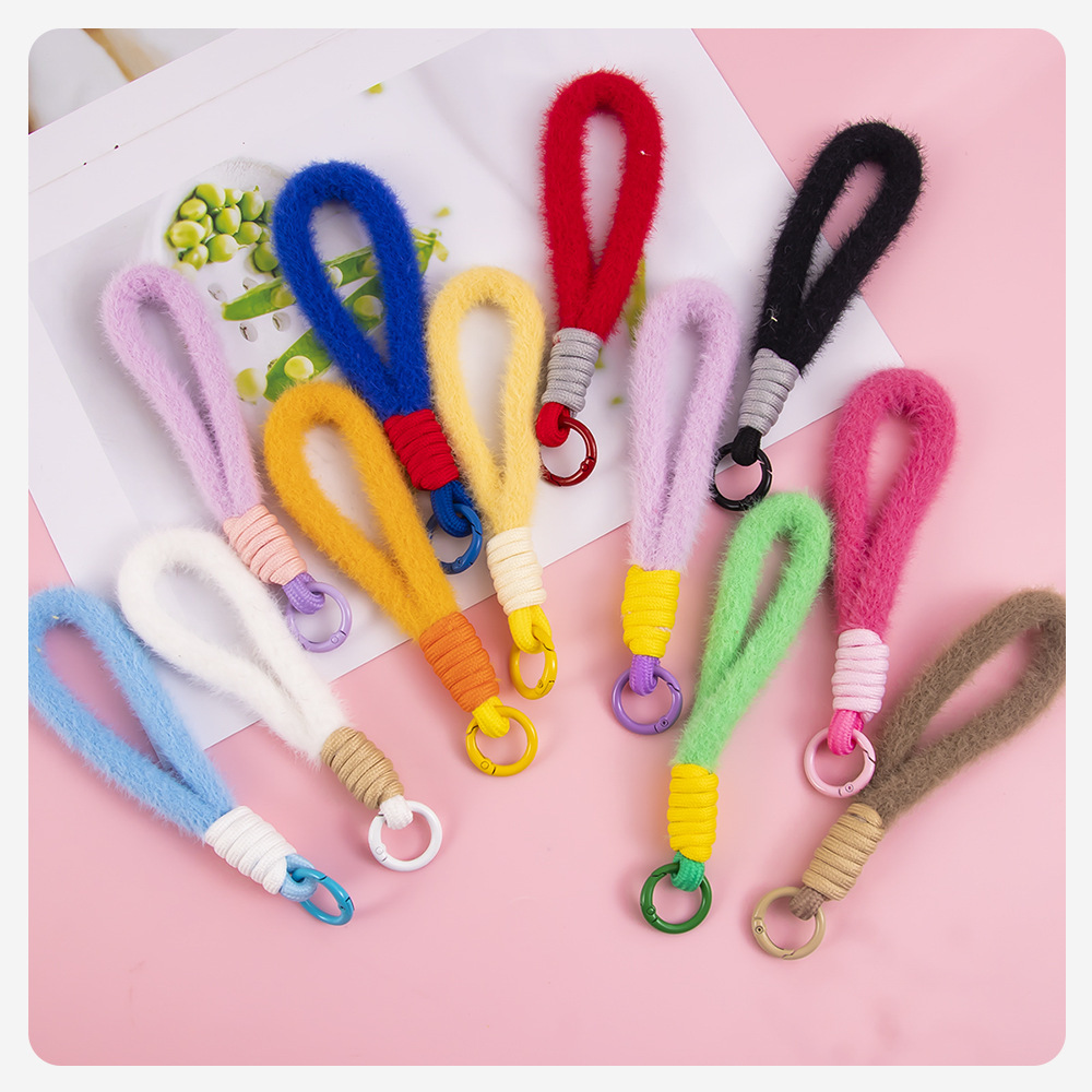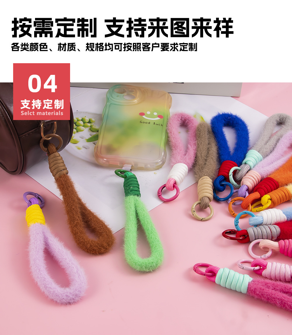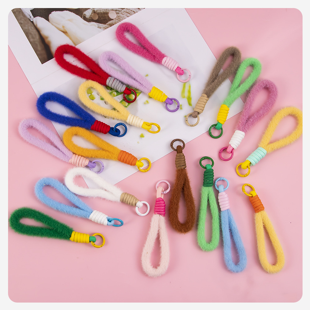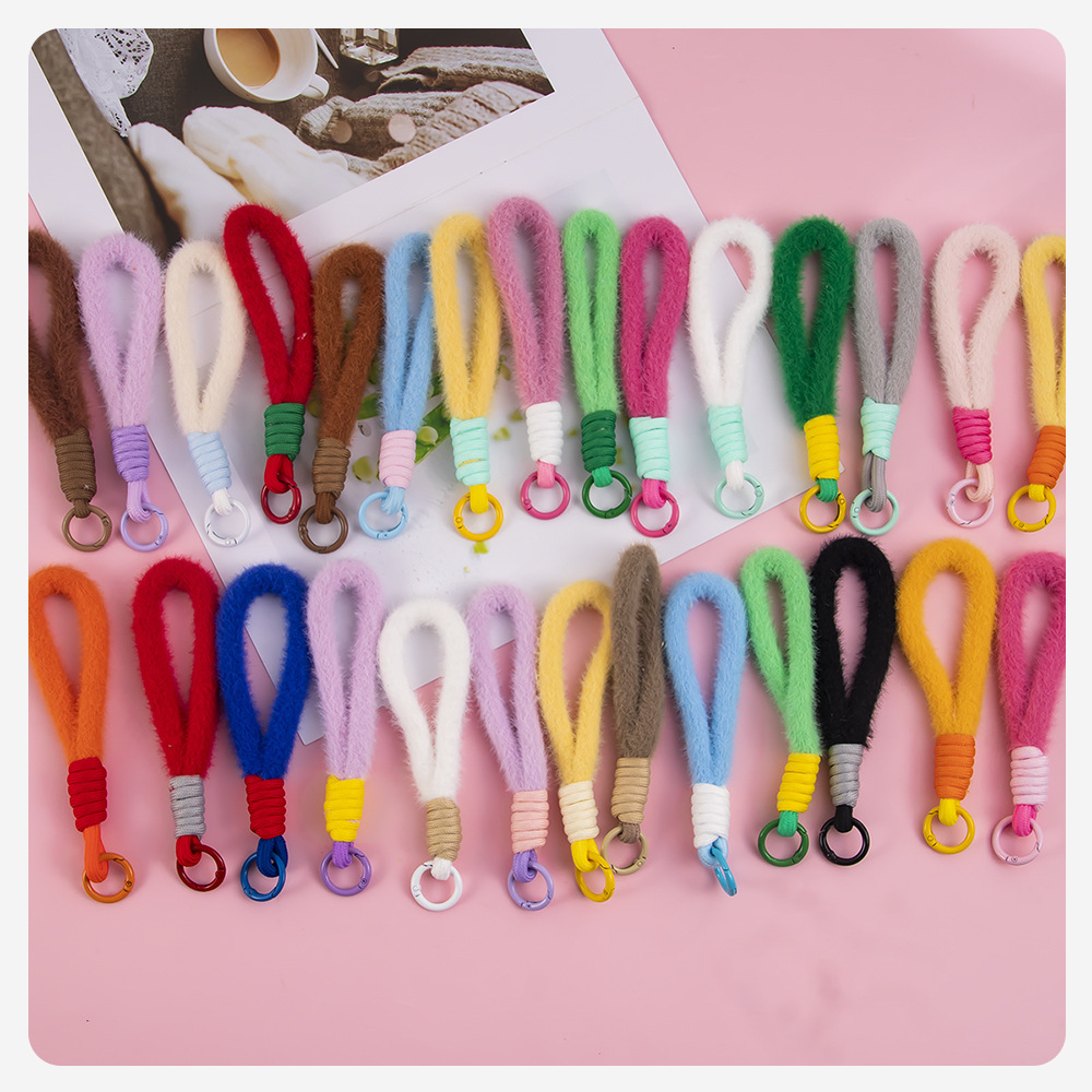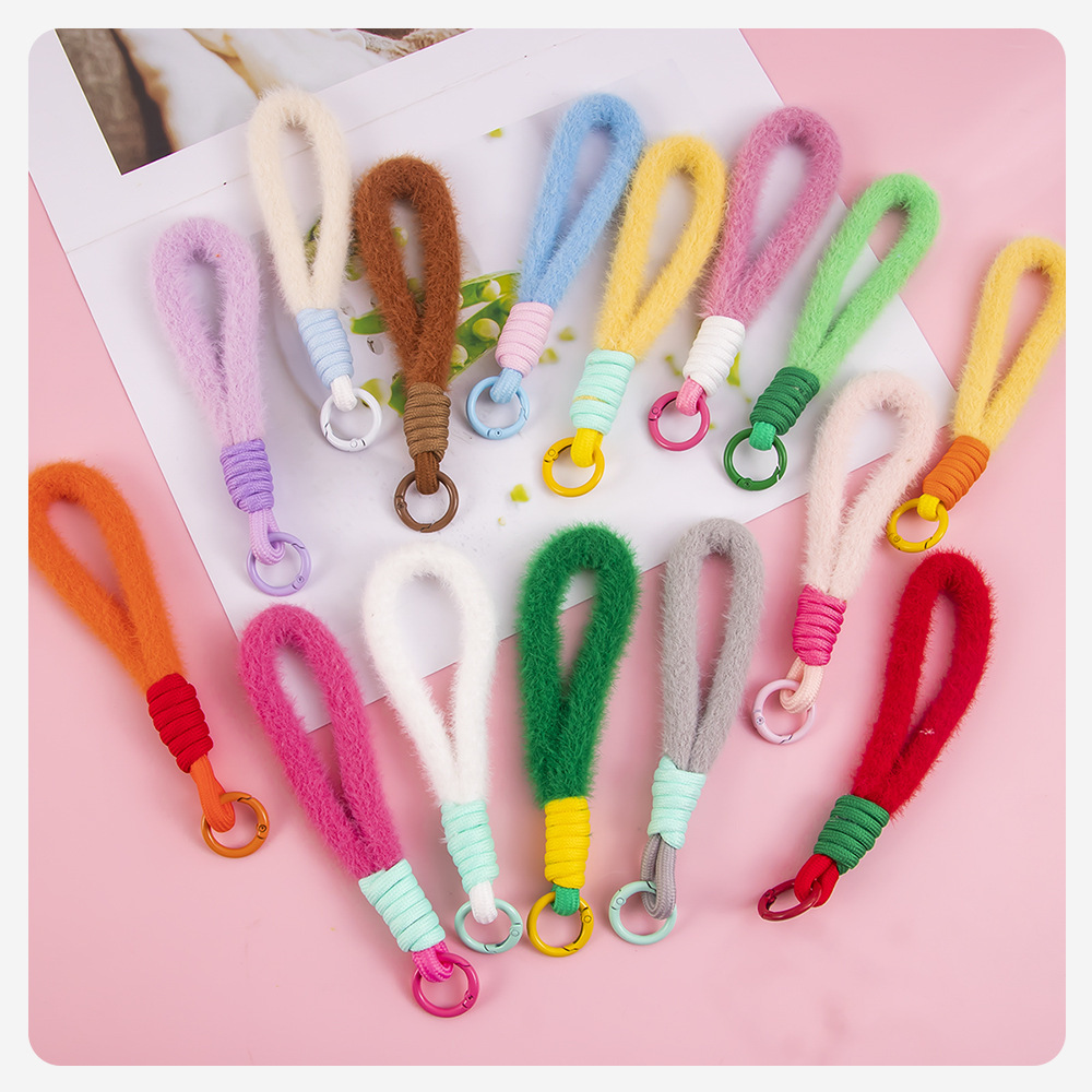 新款彩色毛绒手机短绳公仔玩偶挂件钥匙扣包包手机壳挂饰品配件厂