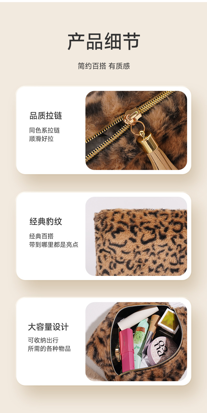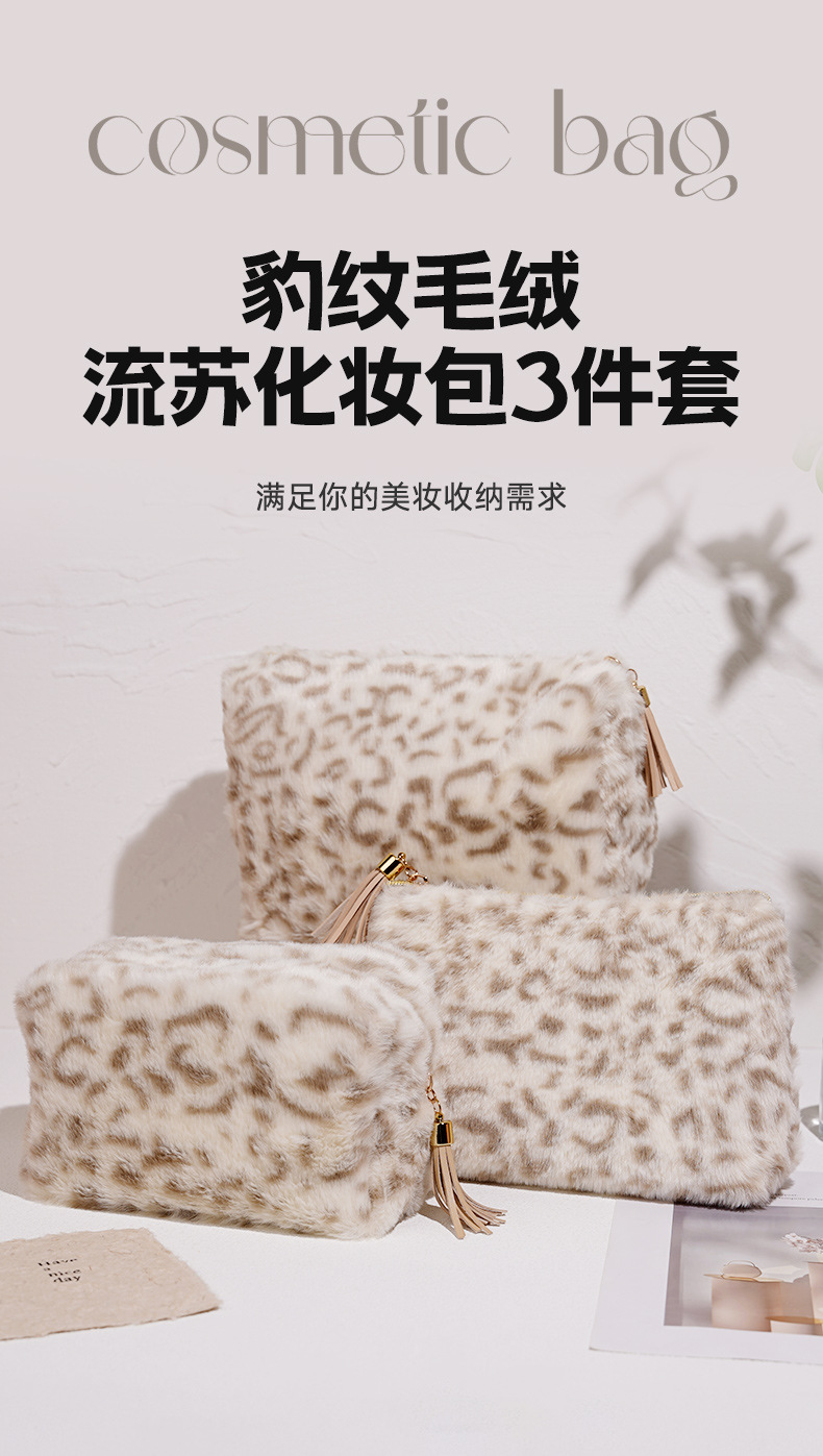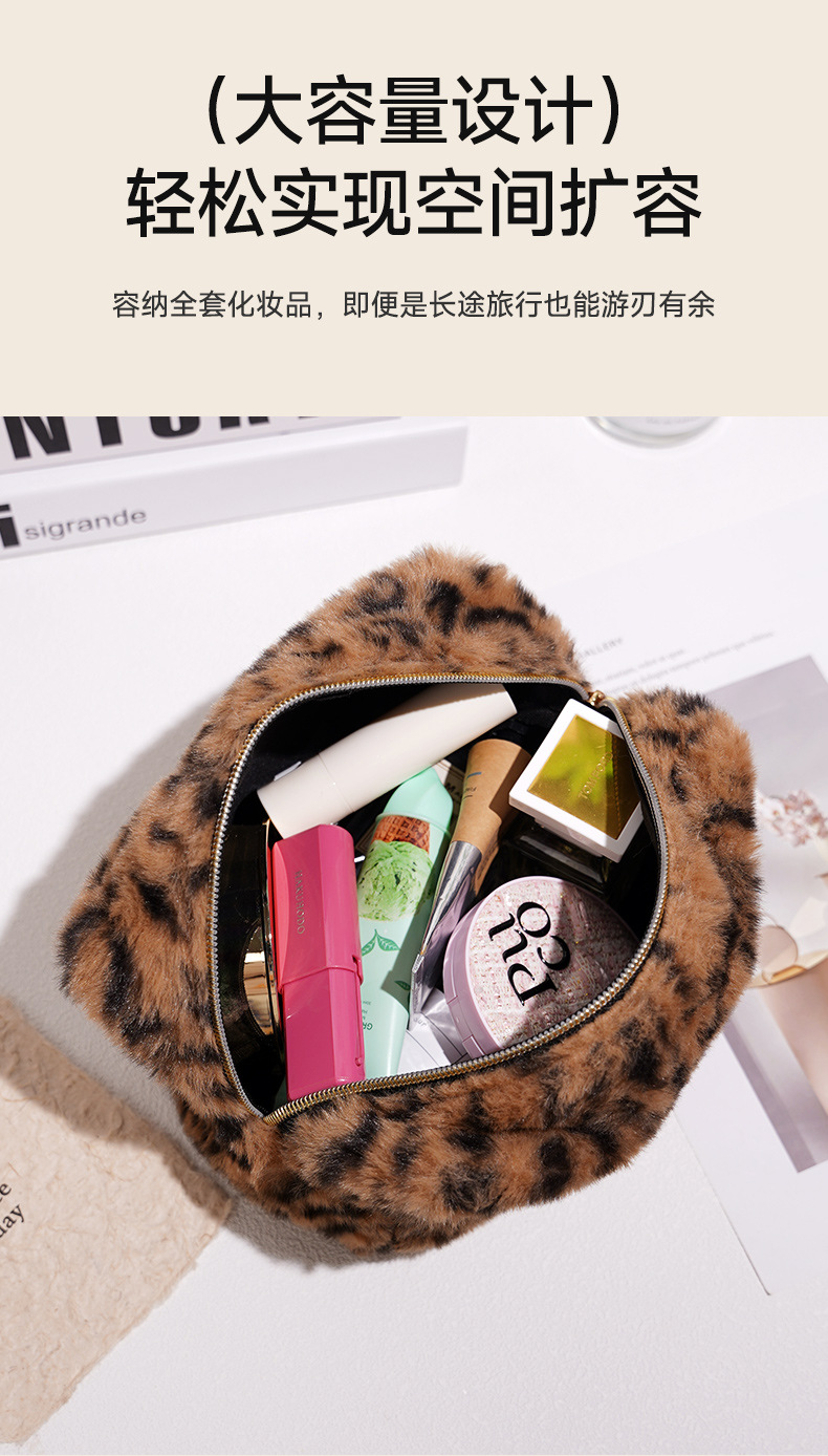 豹纹毛绒化妆包大容量包包女高级感时尚收纳包旅游便携厂家批发