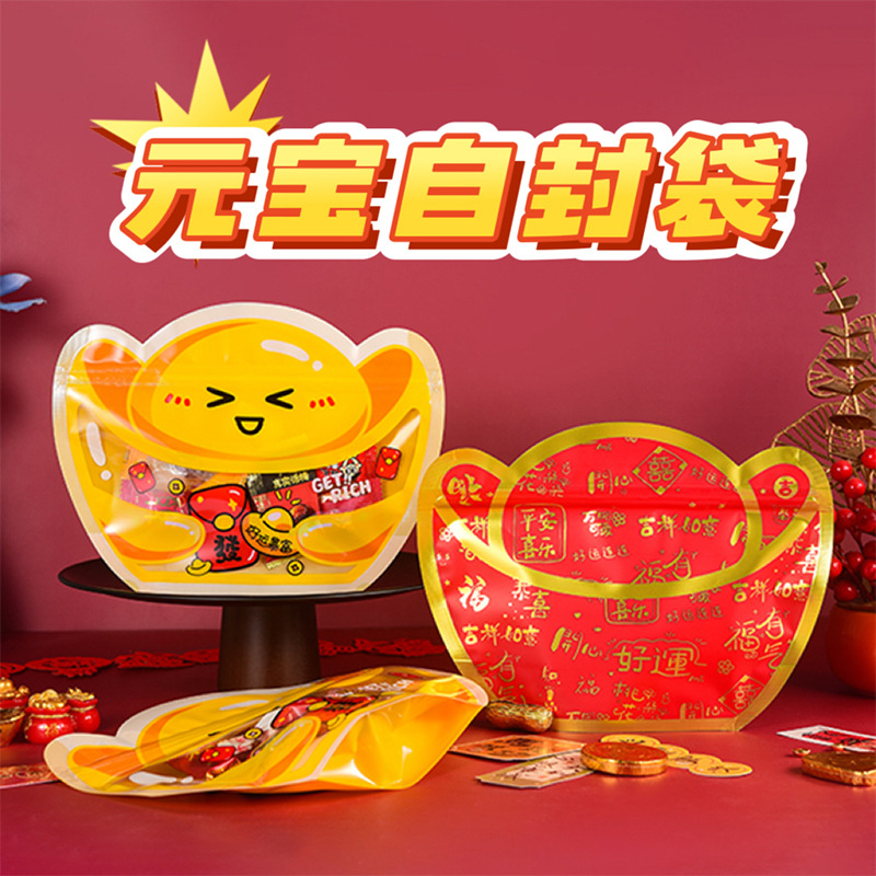新年可爱卡通元宝自封袋年货礼品袋喜庆小糖果零食饼干食品包装袋