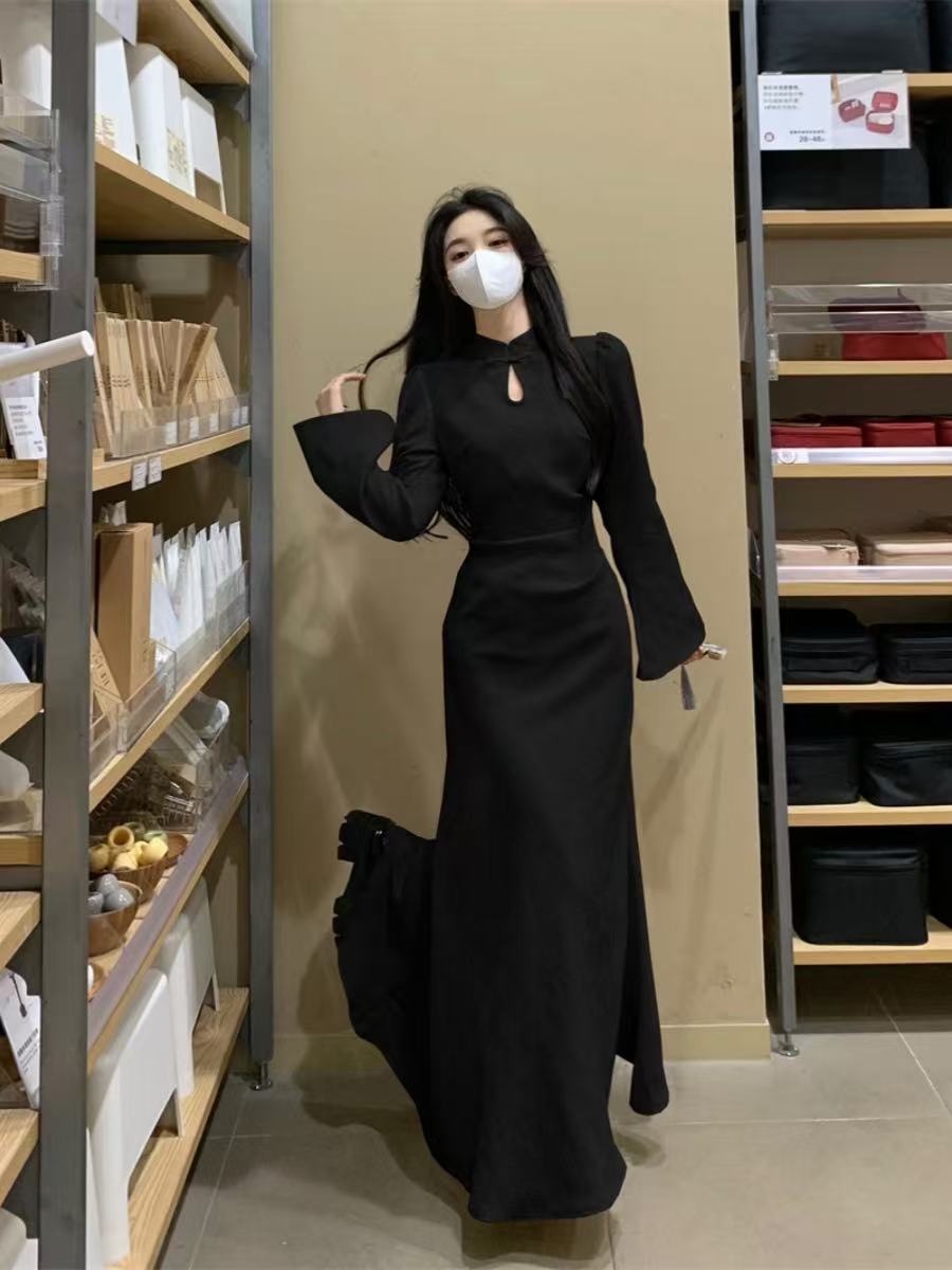 新中式改良旗袍新款连衣裙女长袖冬季加绒冬天长款气质女装秋冬款
