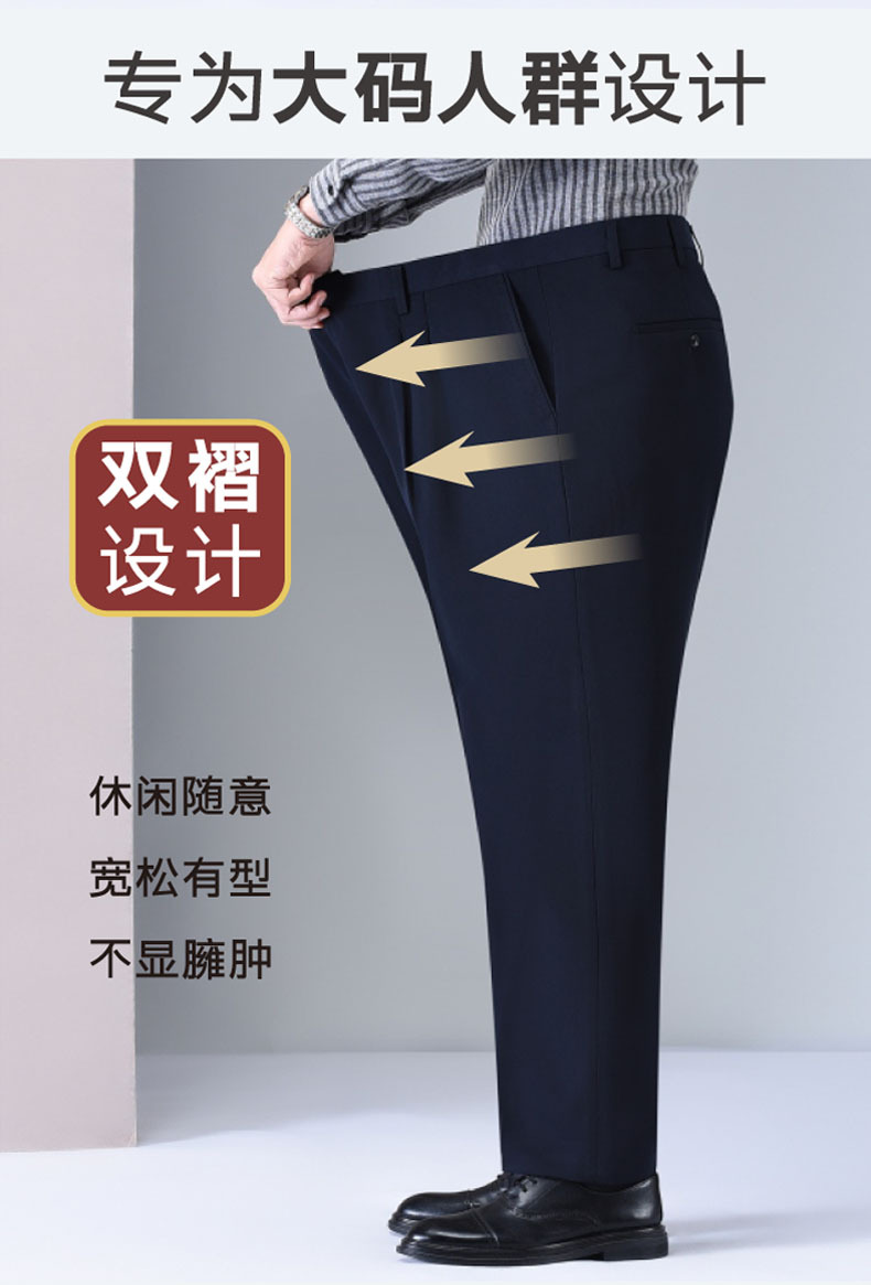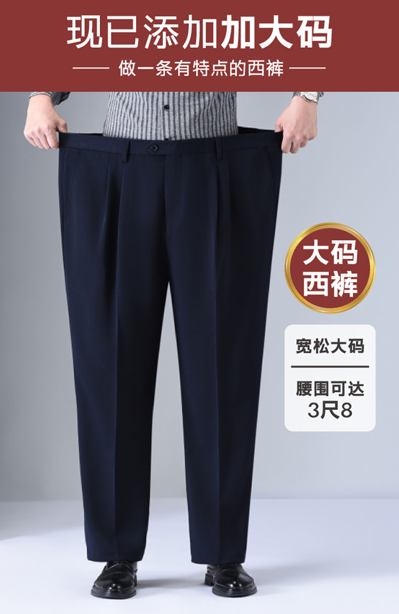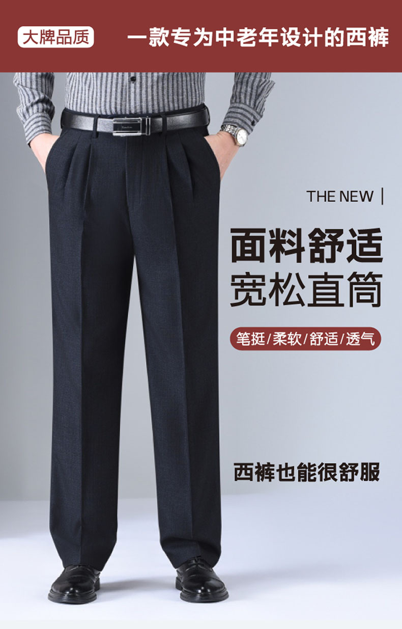 西裤男春秋款中年休闲爸爸装裤子宽松男士西装裤高腰深档加肥大码