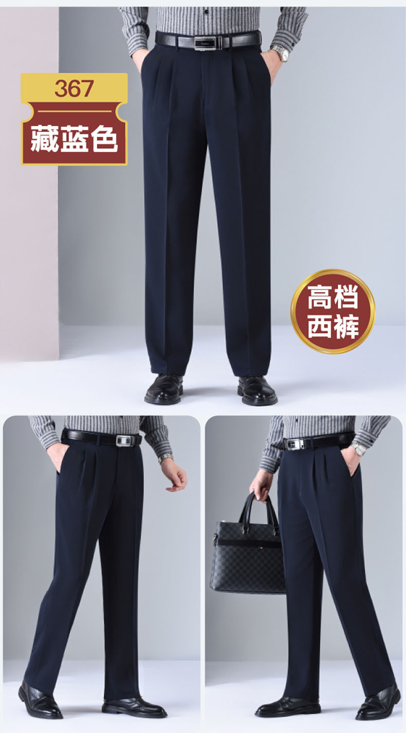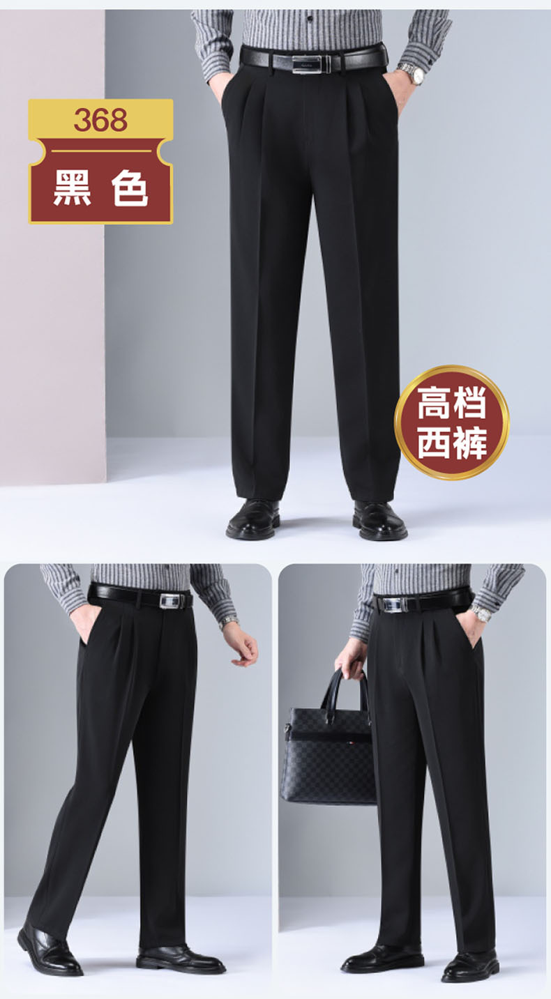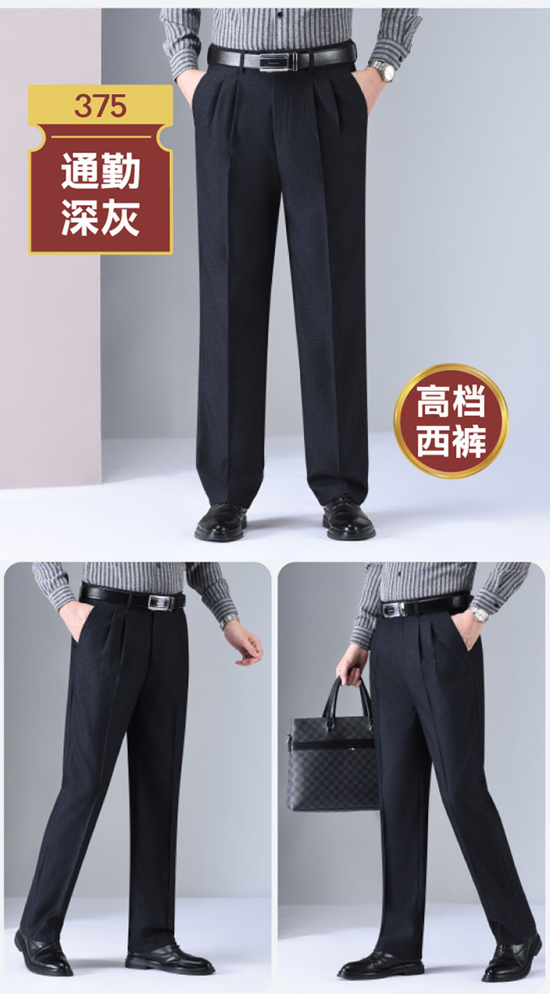 西裤男春秋款中年休闲爸爸装裤子宽松男士西装裤高腰深档加肥大码