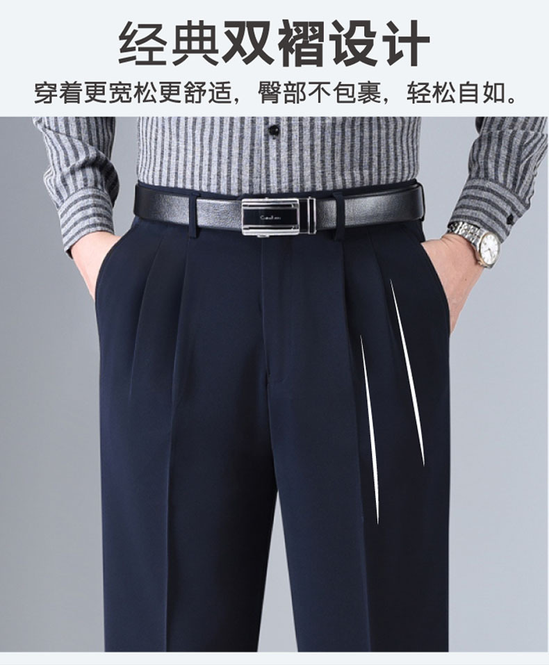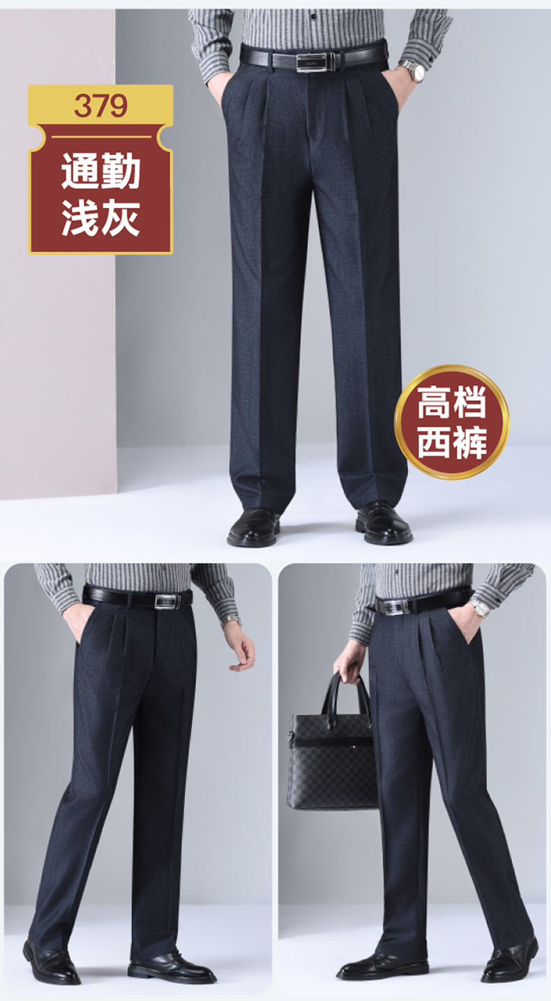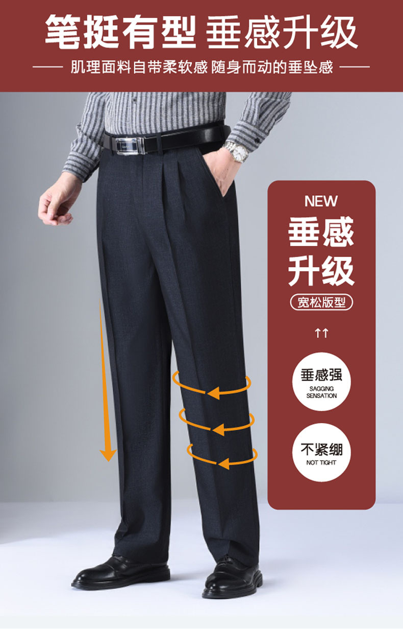 秋冬厚款毛蚕丝双褶休闲西裤男垂顺免烫中老年宽松直筒爸爸西装裤