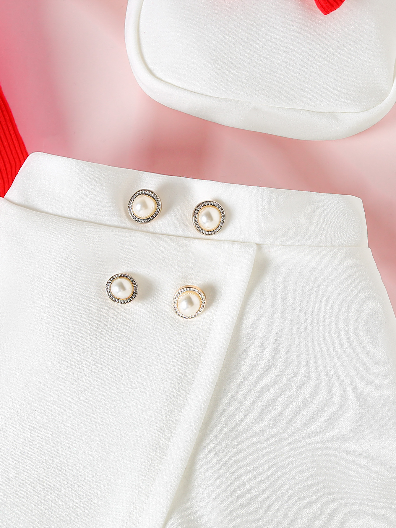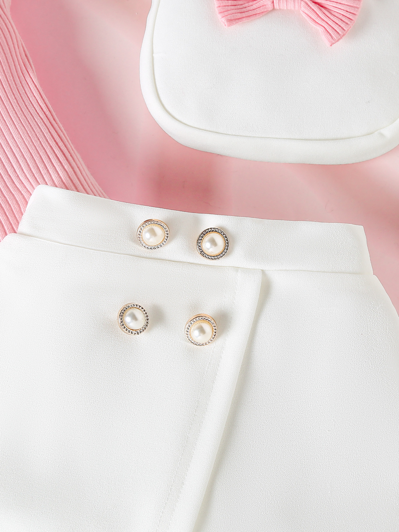 2026跨境女童欧美时尚花朵纯色上衣+不规则蝴蝶结珠珠皮裙