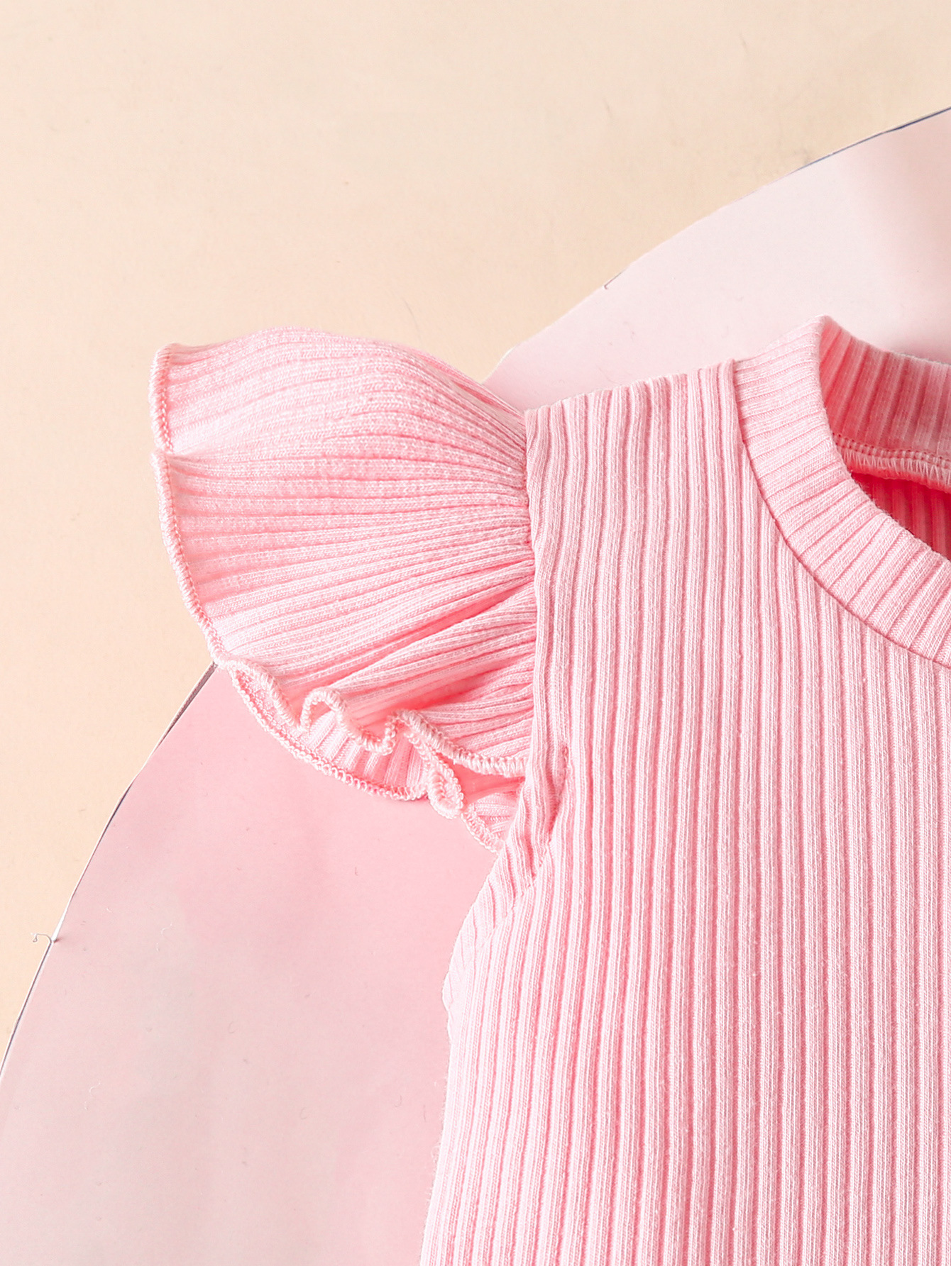 女婴甜美套装 粉色飞袖上衣 + 牛仔百褶裙 + 发带 宝宝可爱穿搭