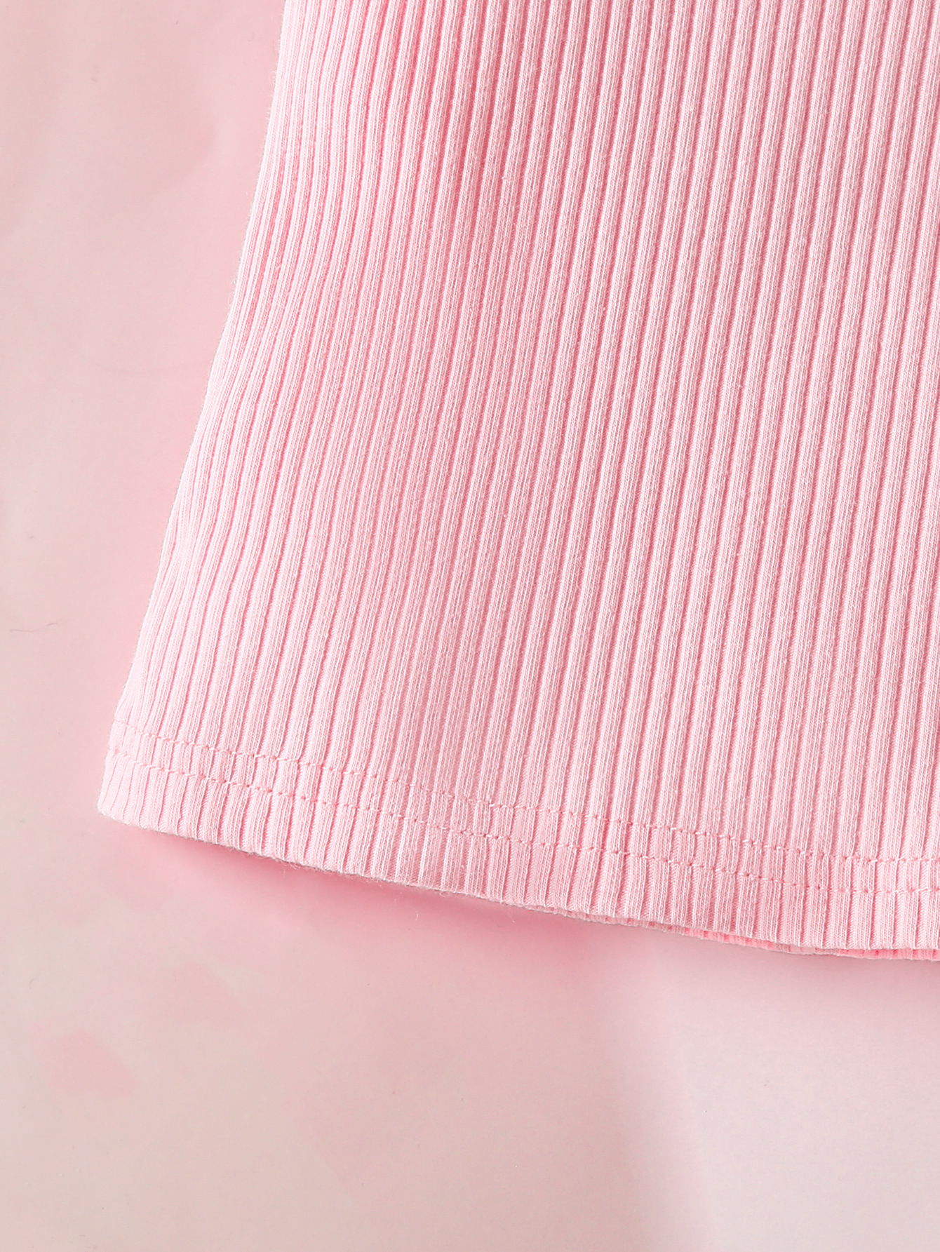 外贸幼儿裤套装女婴纯色坑条圆领T恤镶边小香风裙子贝雷帽三件套
