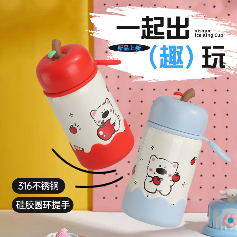 网红萌趣苹果卡通儿童保温杯316不锈钢高颜值男女水杯便携随行杯