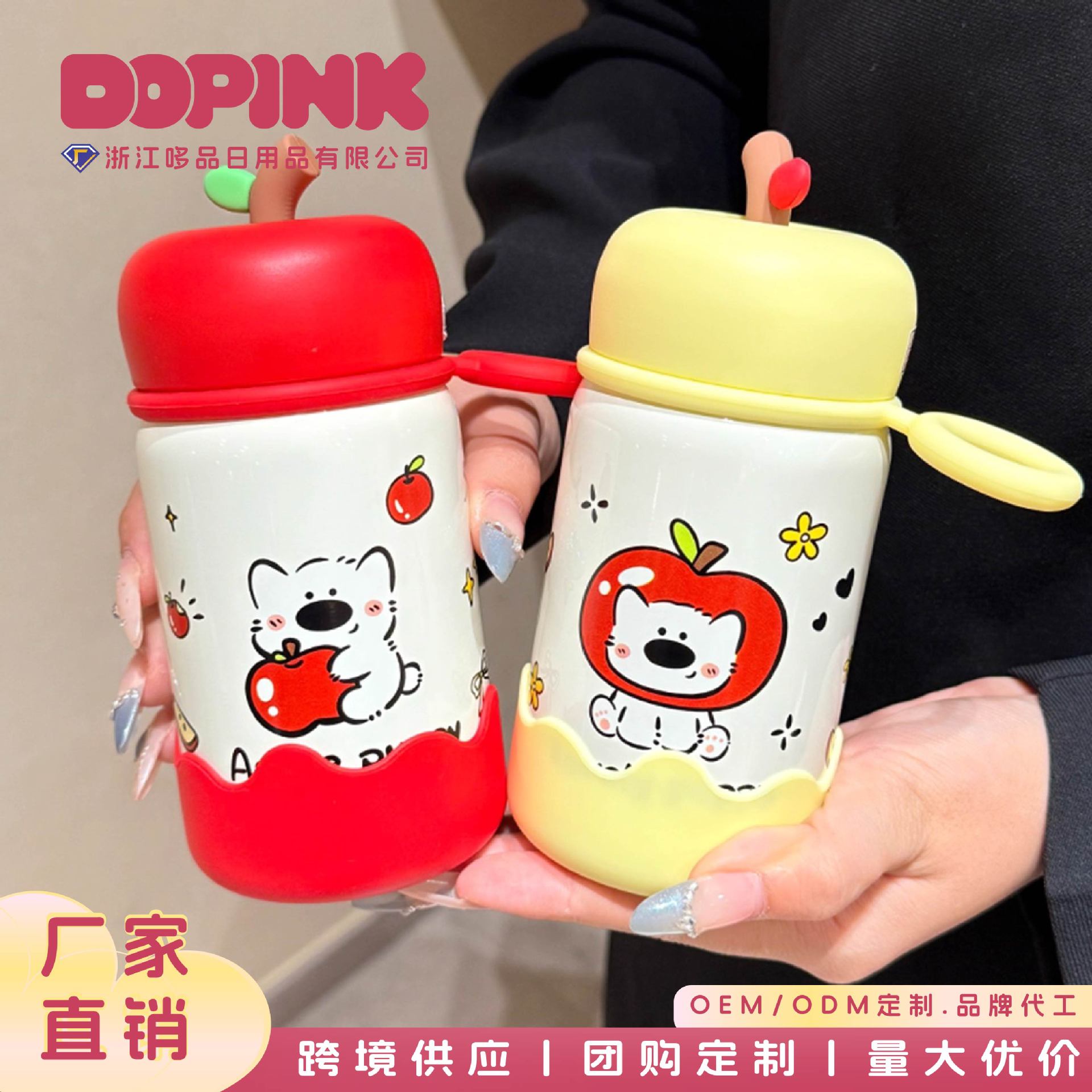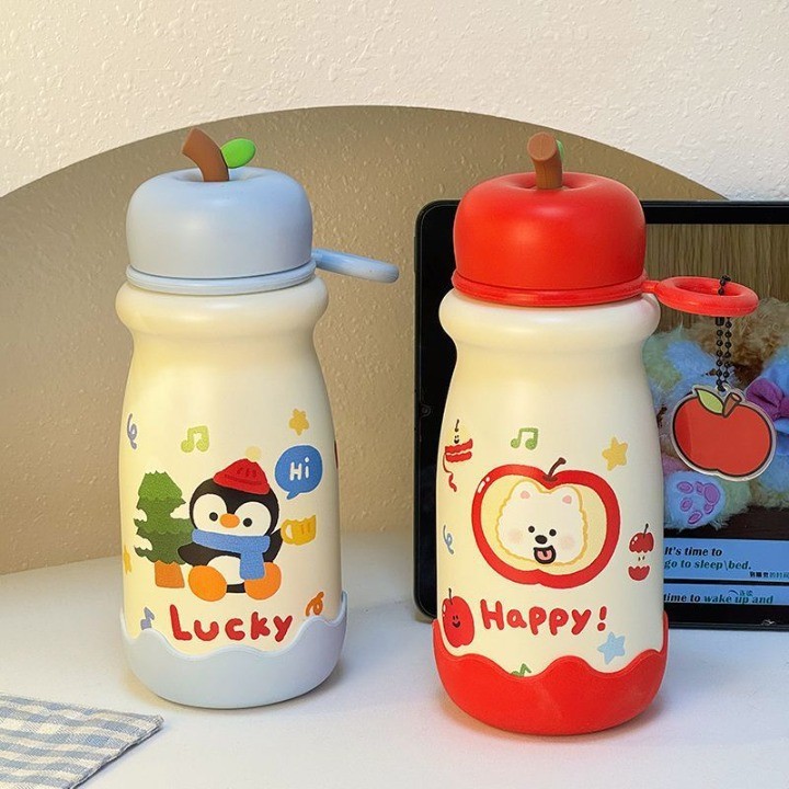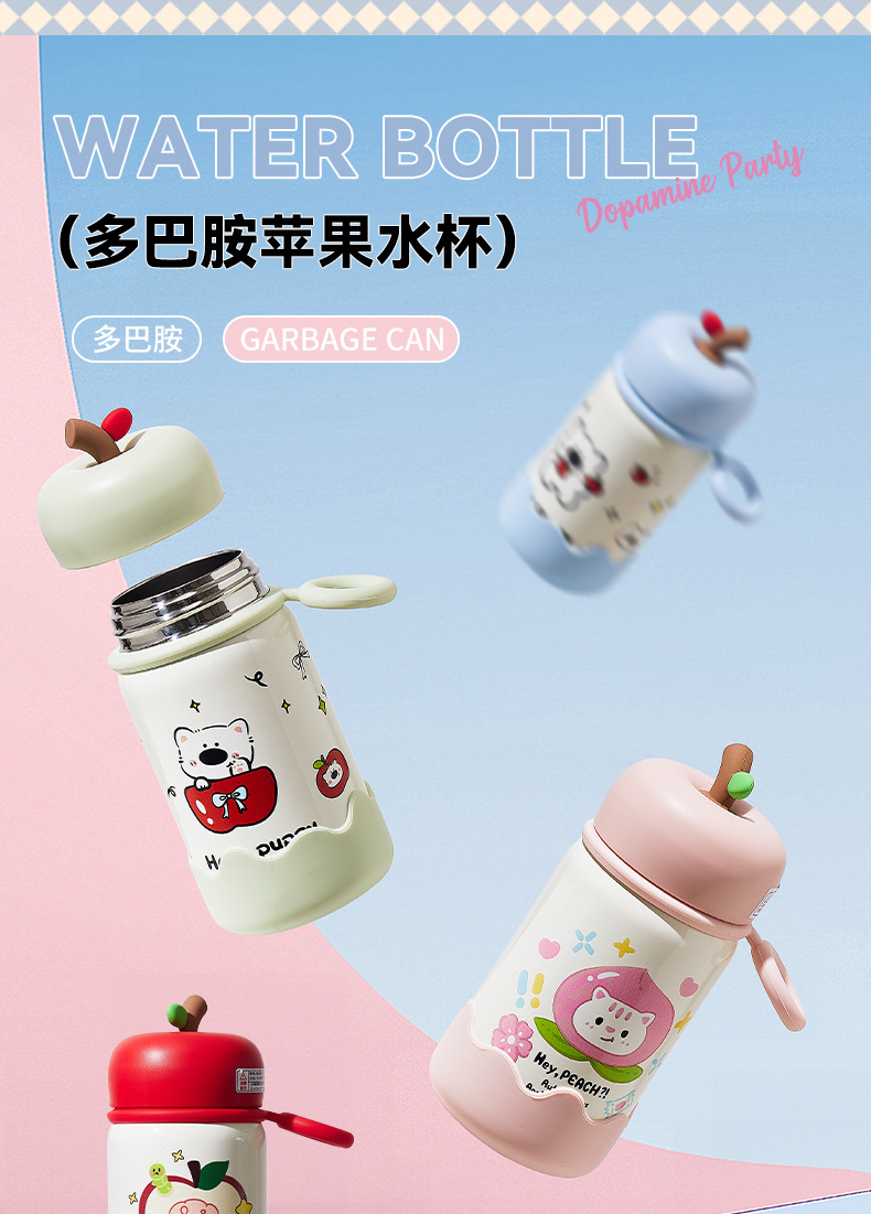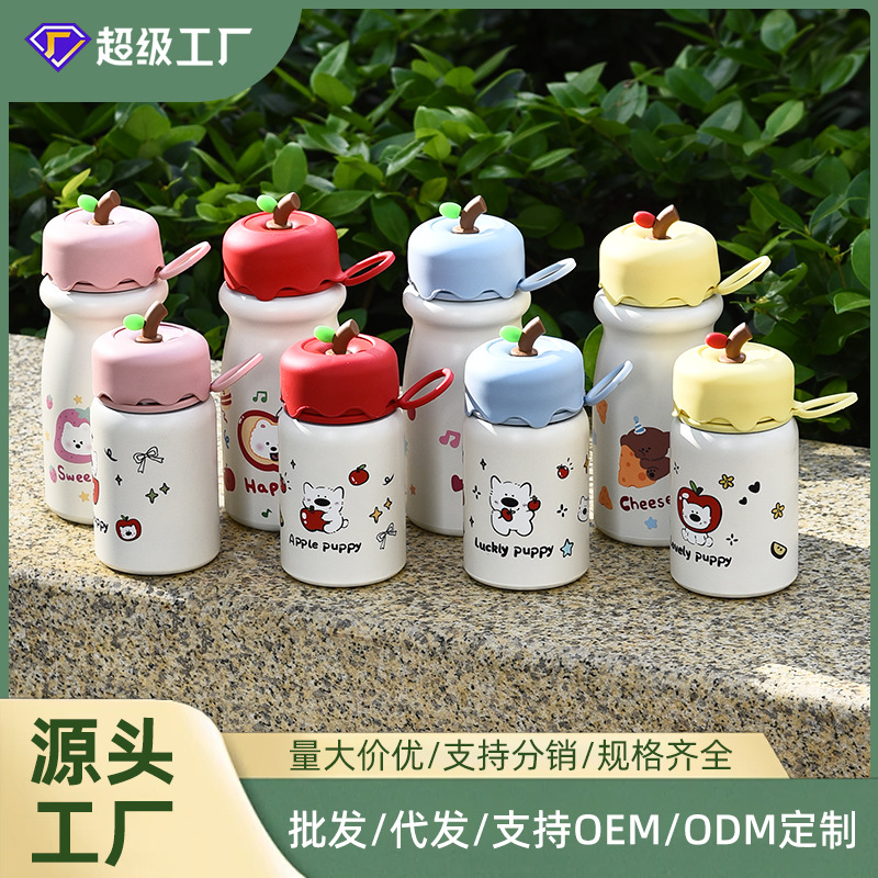 新款卡通可爱高颜值苹果保温杯316不锈钢水杯便携提环迷你直饮杯