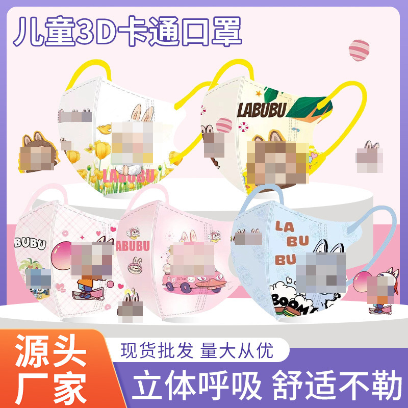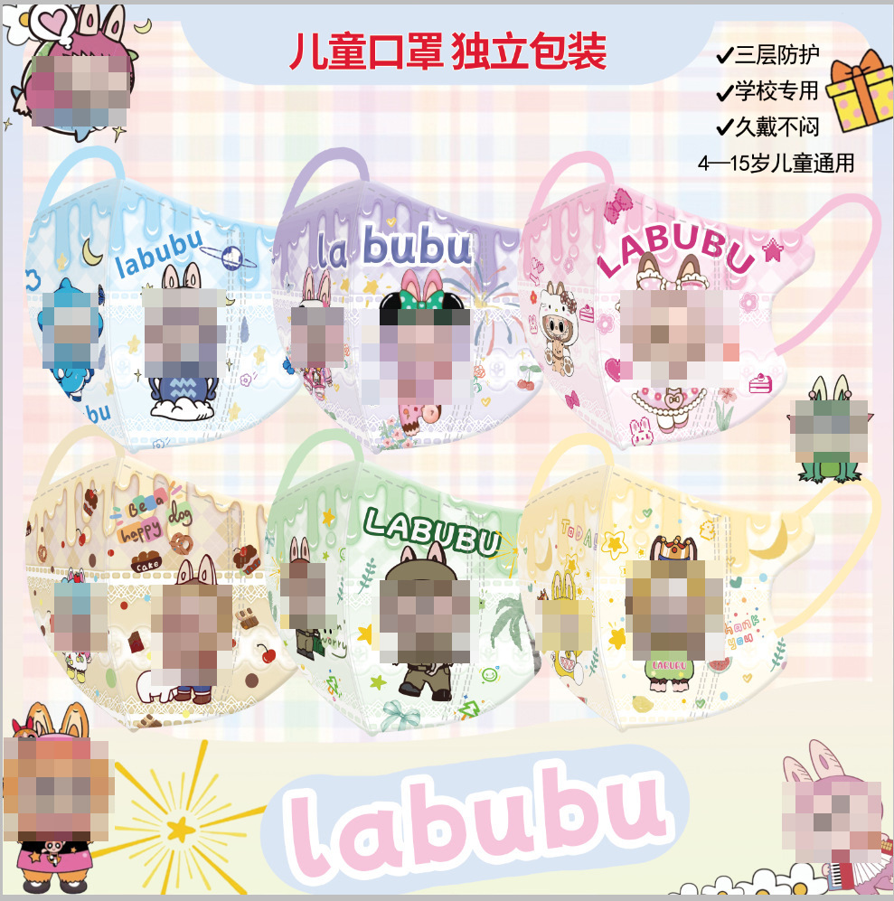 タイで人気の漫画LABUBU子供用3D立体マスク個別包装三層構造使い捨てマスク-129