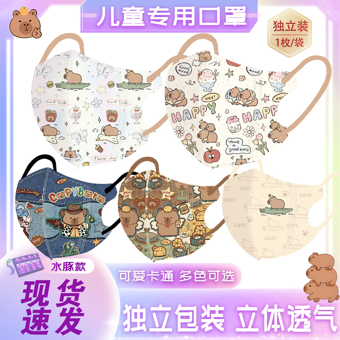 一次性儿童3D口罩卡皮巴拉卡通小水豚学生防护口罩独立包装-175