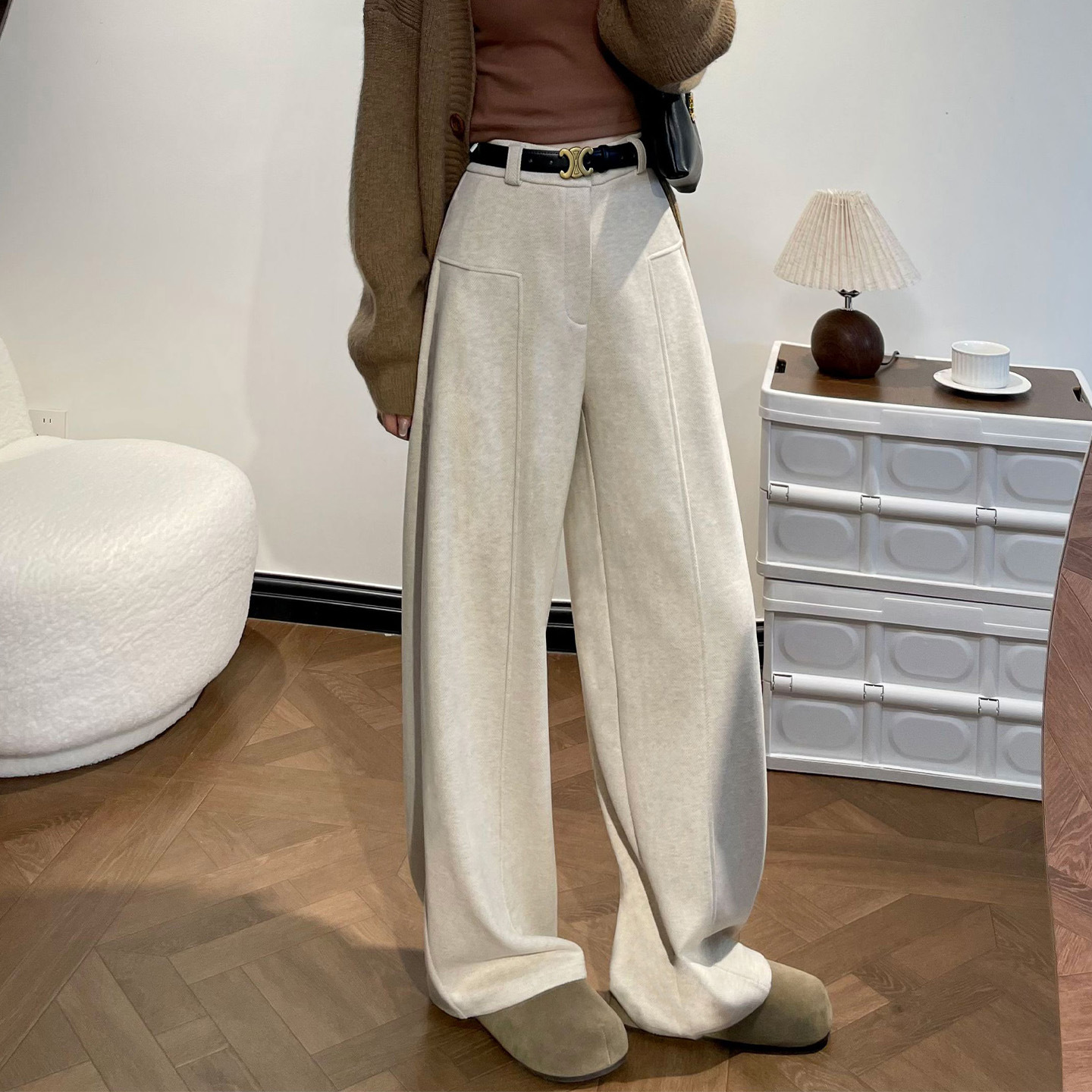 秋冬気質100% オーストラリア初のウール高腰ワイドパンツ女性雲輪カジュアルソフトモチモチウールストレートズボン