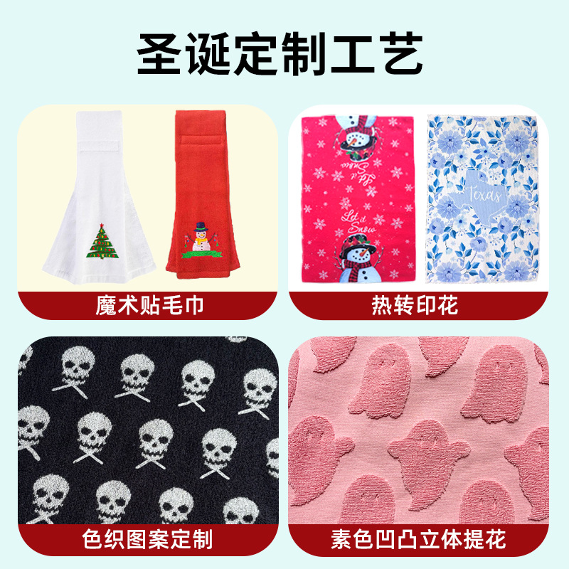 跨境纯棉圣诞毛巾吸水不掉毛厨房巾节日礼品主题毛巾刺绣LOGO定制