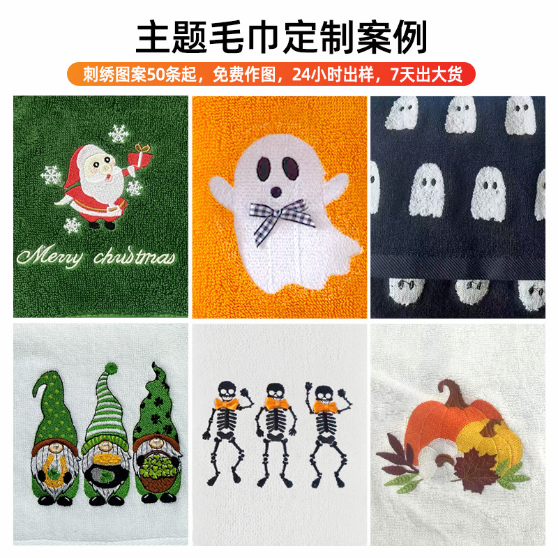 クリスマスタオル綿刺繍老人毛タオルクロスボーダーハロウィーンお土産タオル外国貿易カスタマイズ