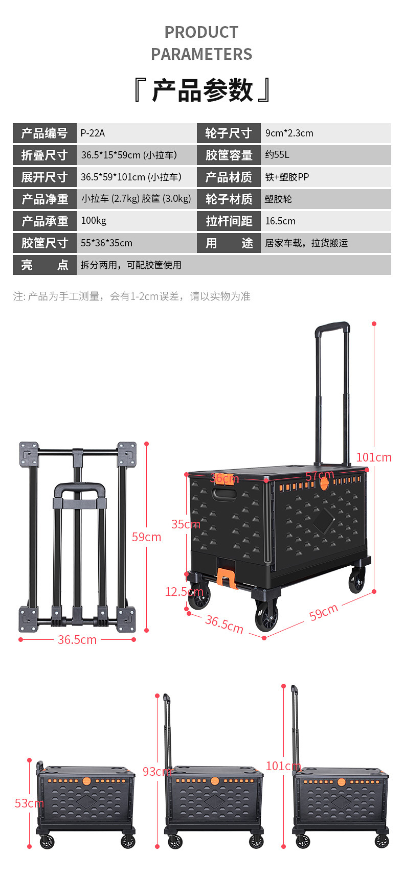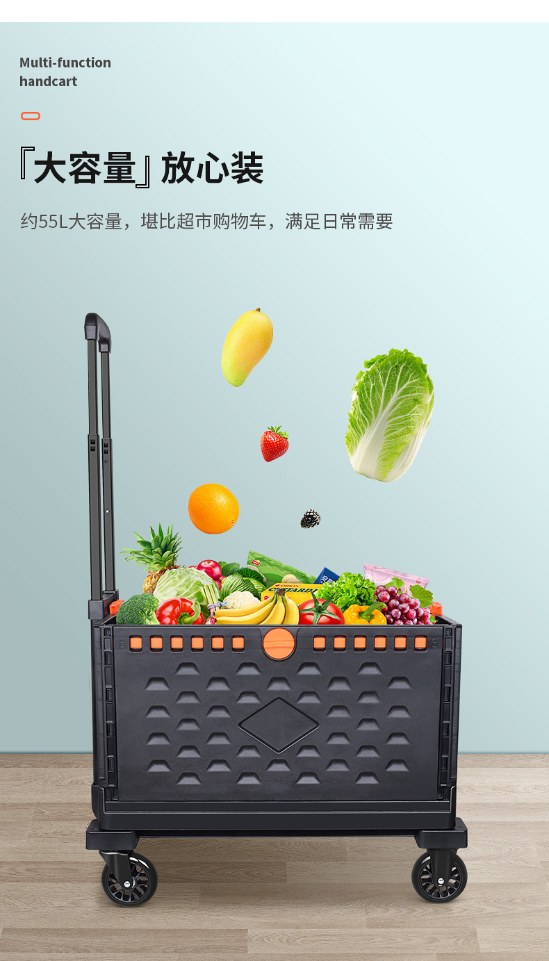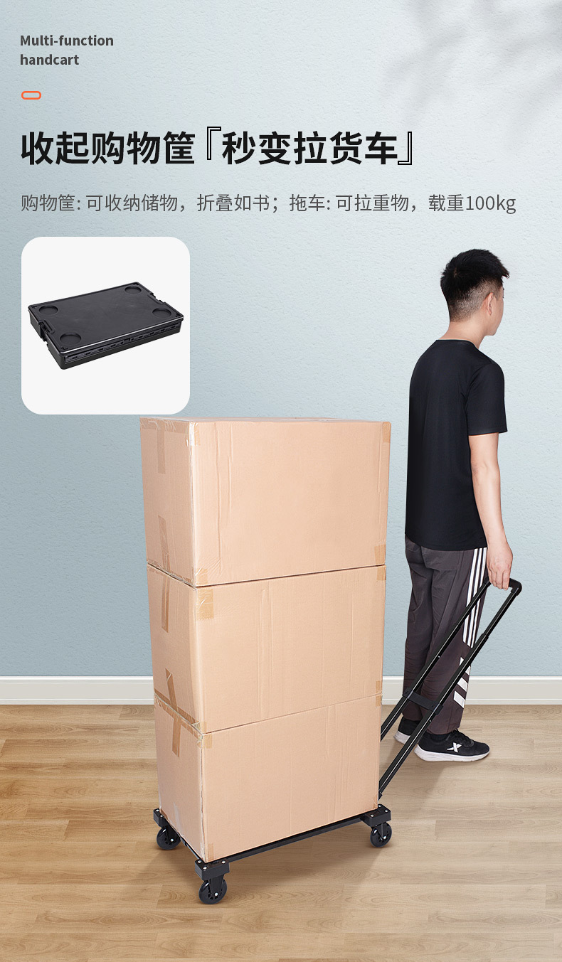 大容量折叠收纳箱拉杆车摆摊买菜露营多功能便携式折叠小推车拉货