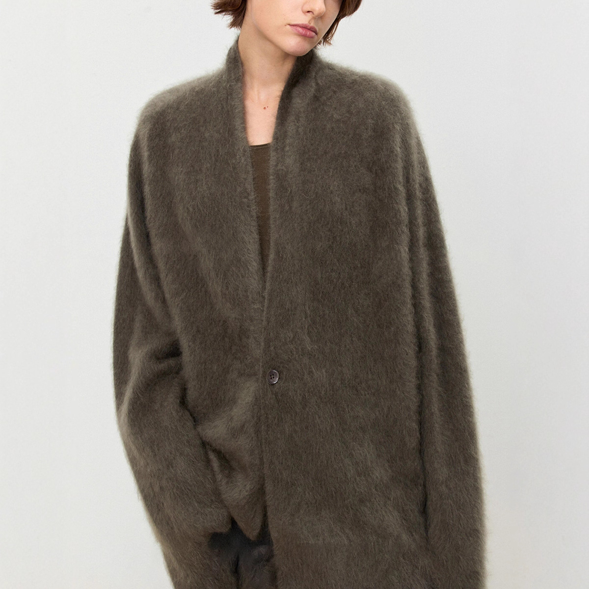 黑标静奢一粒扣”高品奢级100羊绒拉毛 纸片人慵懒极简贵气开衫外