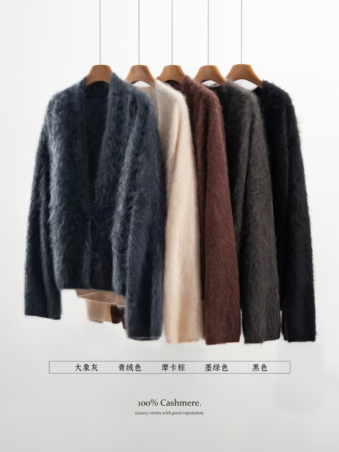 高端100纯羊绒针织开衫V字领外套秋冬新款拉绒舒适软糯外搭潮慵懒