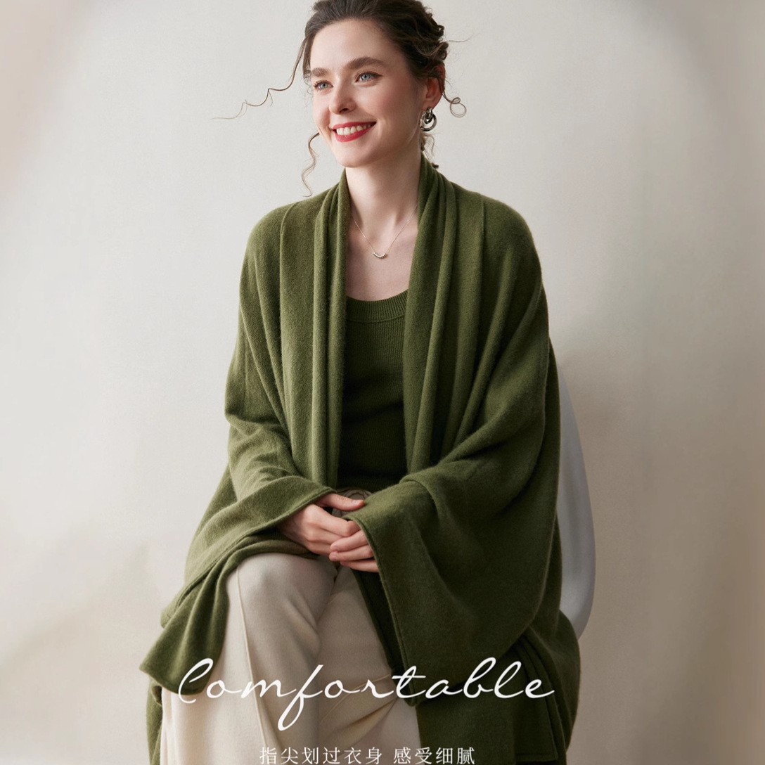 山羊绒衫披肩初秋新款羊毛针织无扣开衫简约百搭宽松显瘦女式外套