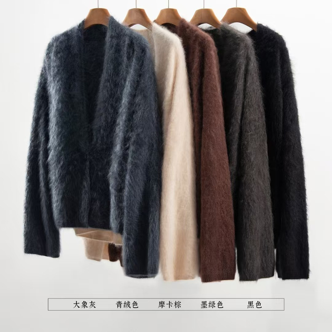 厚手のセーター、ファーのような質感、秋冬ファッション、Vネック、ゆったりとしたルーズセーター、起毛加工、100%カシミヤセーター、レディースカーディガンジャケット