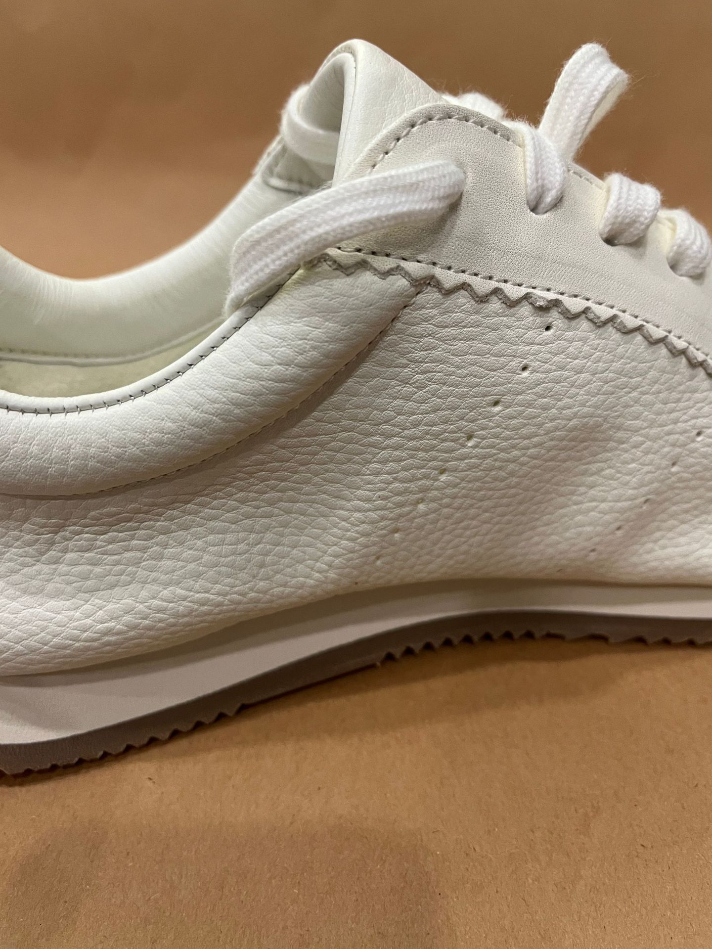 北欧风的软牛皮鞋款。荔枝纹小牛皮。