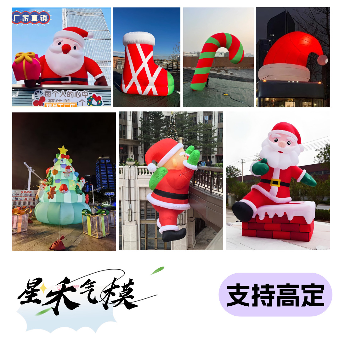 充气圣诞老人爬墙气模定制人偶圣诞树充气模型商场美陈圣诞帽气膜