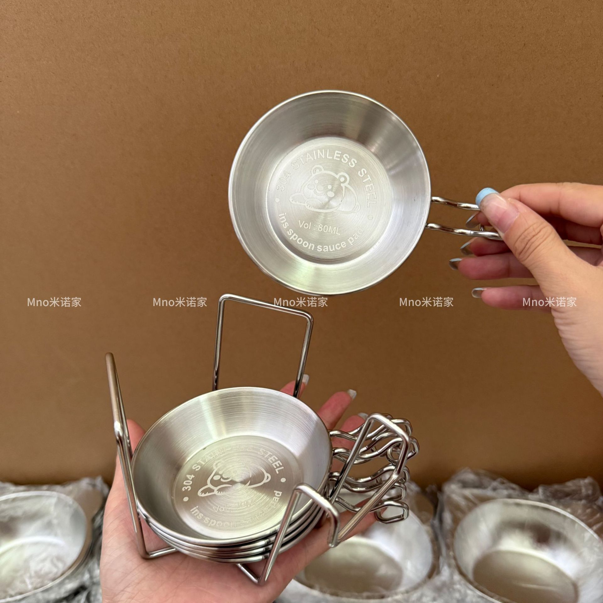 ミノ家韓国式304鋼米酒食器ハンドル付き軽食食器鍋店専用調味料皿をつけて鋼を厚くする