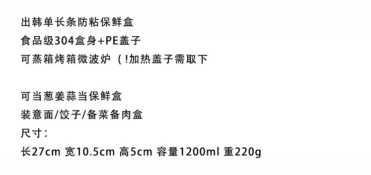 规格 304钢长条形保鲜盒【1200ml】