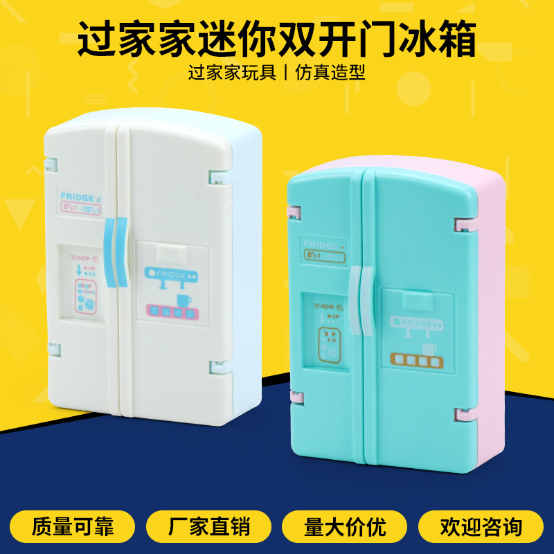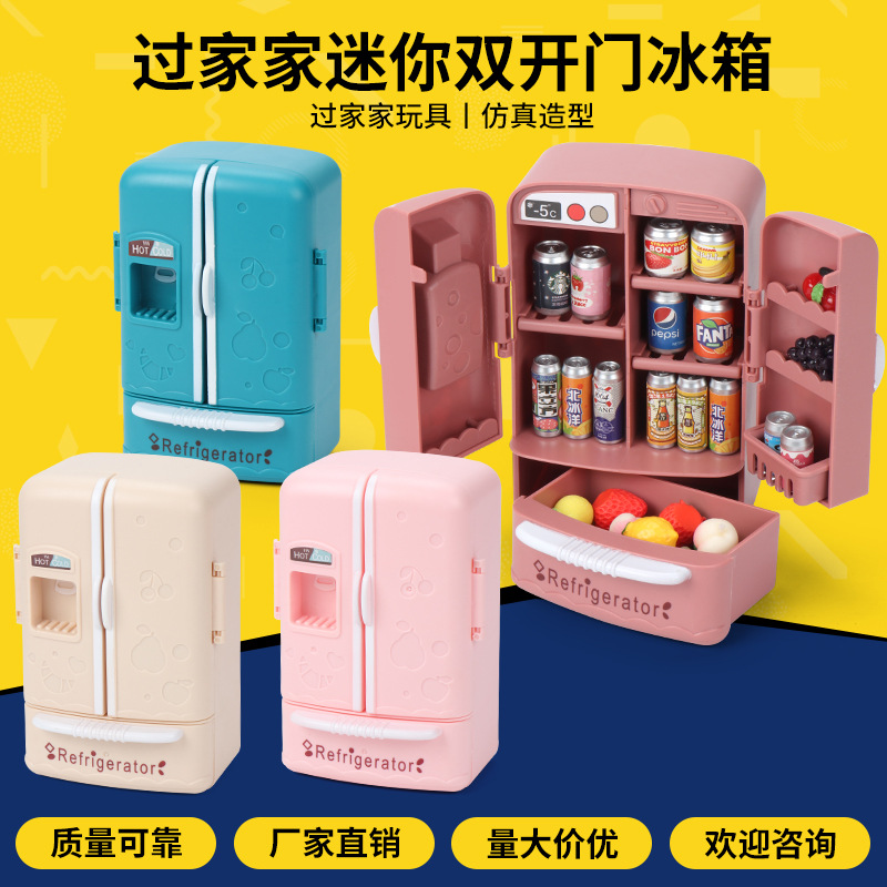 シミュレーションミニ両開きドア冷蔵庫ドールハウスロールプレイングミニチュア食品おもちゃシーン装飾品ままごとのおもちゃ