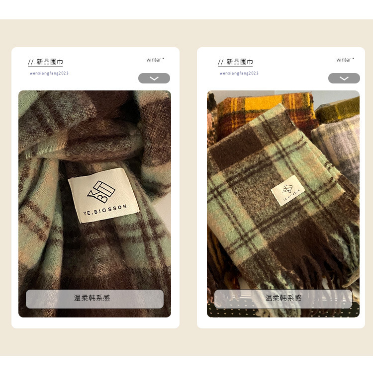 韩版新品仿羊绒格子围巾女秋冬加厚保暖围脖女学生百搭时尚围巾