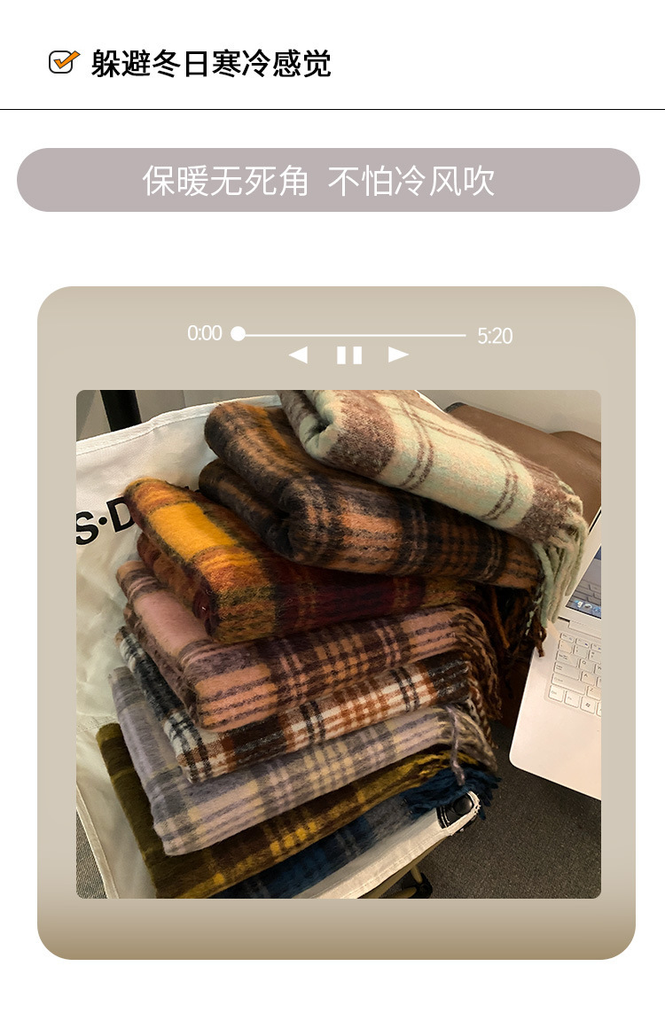 2025新款格子围巾女冬季韩系高级感学生情侣百搭保暖防寒围脖披肩