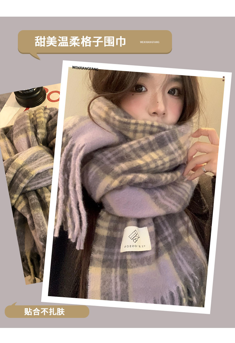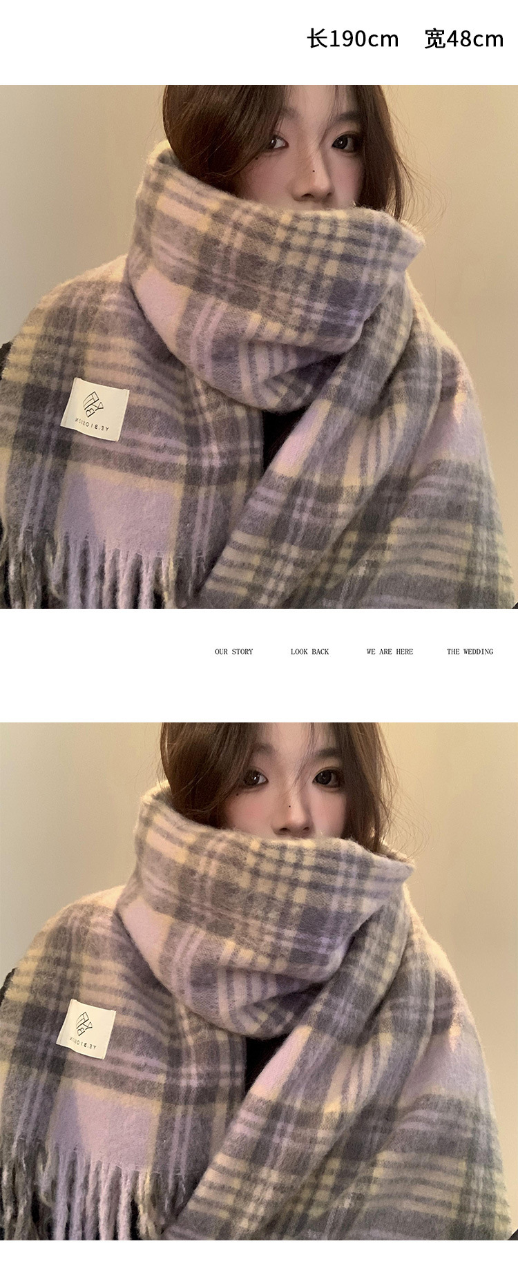 紫色格子围巾女2024年秋冬季韩系氛围感加厚保暖高级感围脖披肩潮