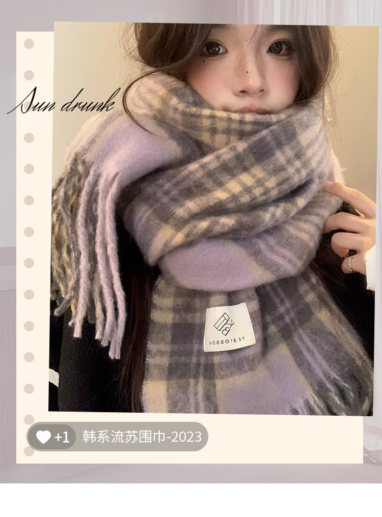 2025韩版学生加大加厚显白围脖跨境代发秋冬新款圣诞紫色围巾女