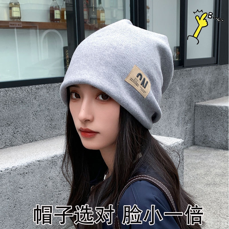 针织帽子女字母春秋网红显脸小百搭针织帽冷帽包头堆堆帽潮秋冬季