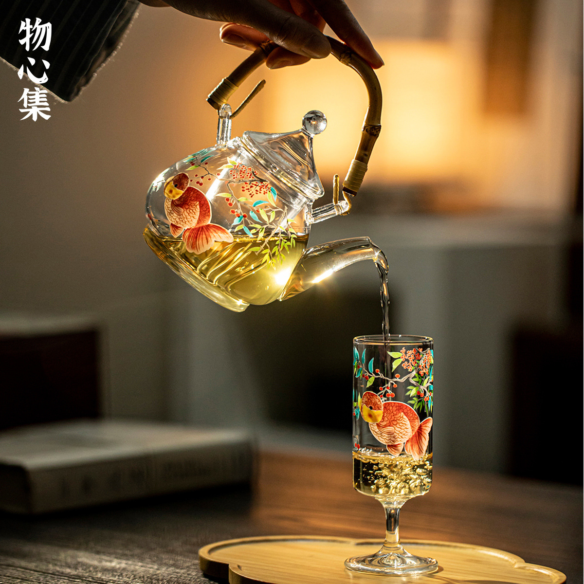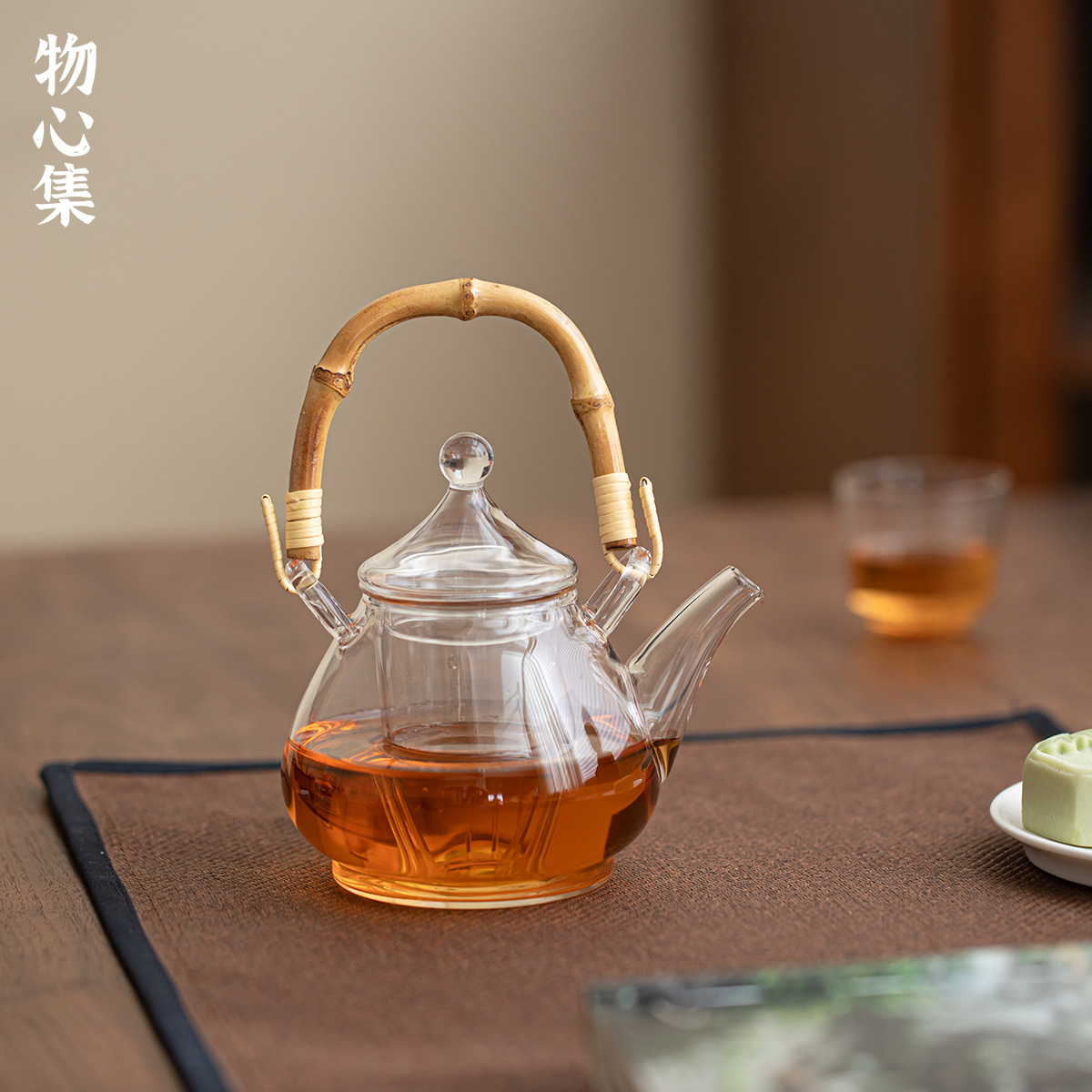 物心集玻璃烧水壶家用煮茶壶过滤泡茶壶耐高温竹把高颜值提梁壶