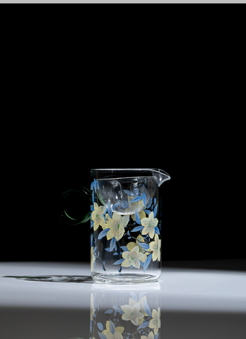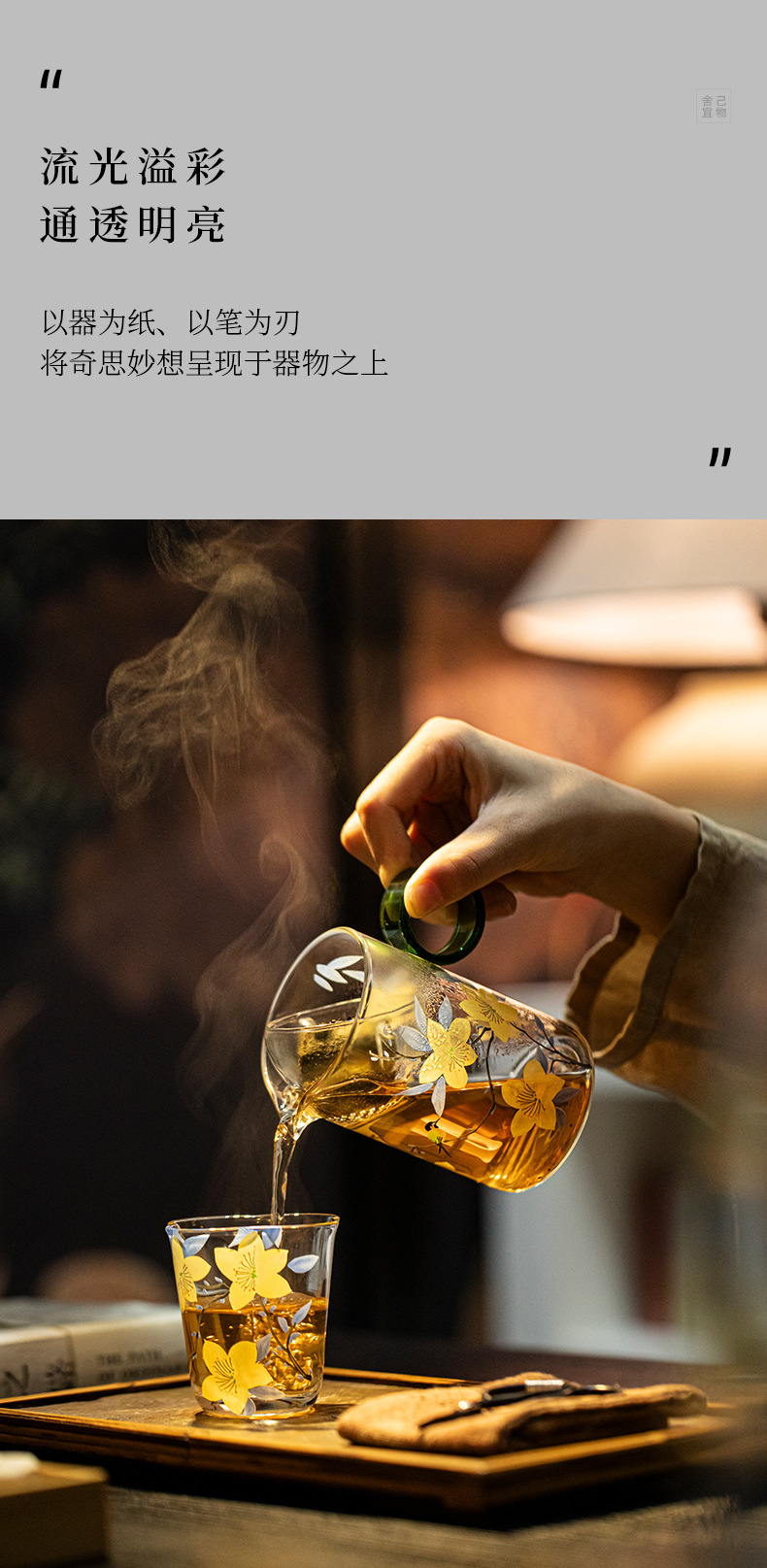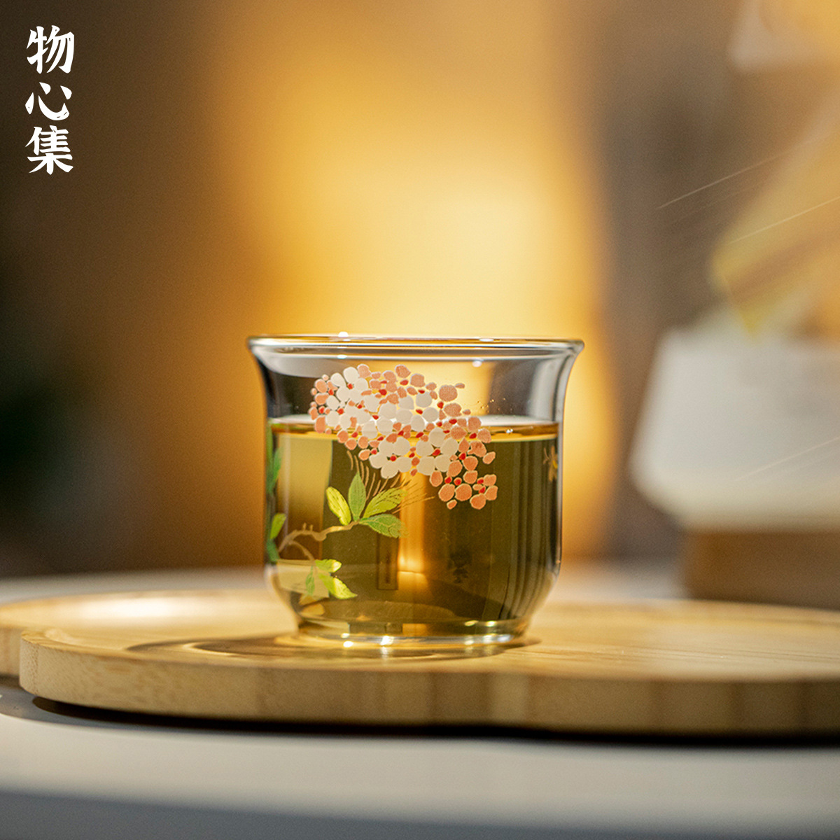 物心集日式绣球花玻璃茶杯功夫茶具高颜值耐高温透明品茗杯杯子