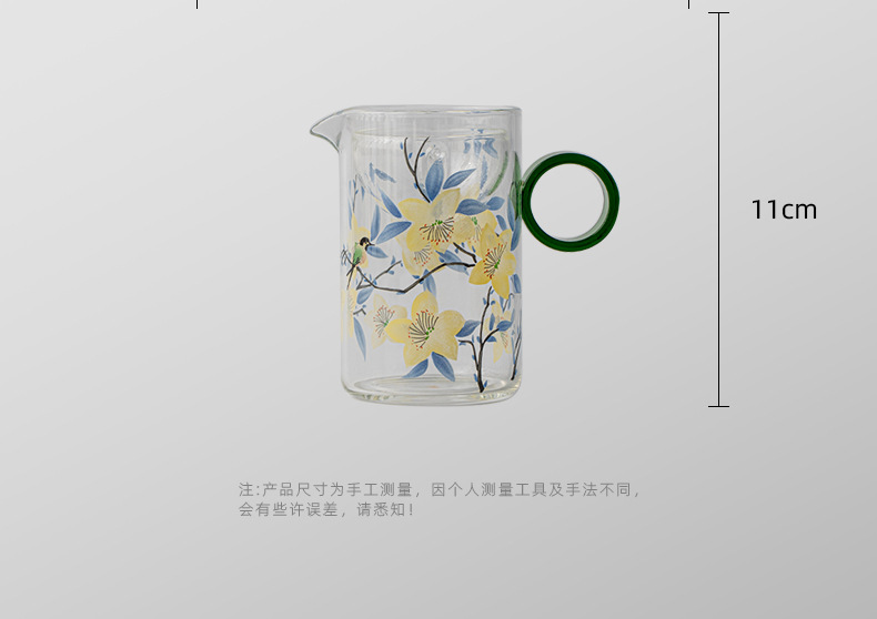 Wuxinji 高ホウケイ酸耐熱ガラス、熱くないグリーンアンバーのハンドル付きフェアカップ、家庭用ティーディバイダー、均一カップ