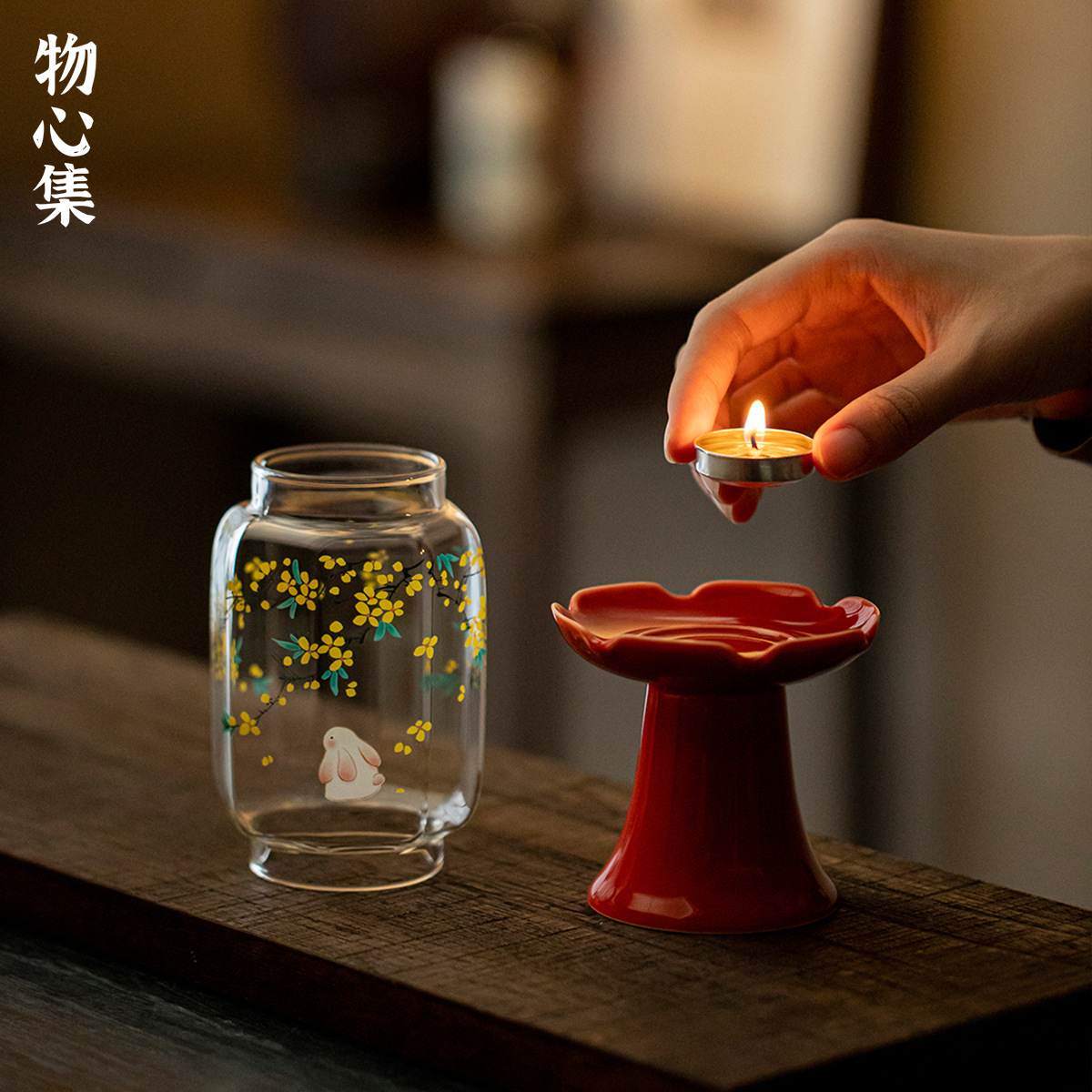 物心集新中式故宫红玻璃烛台灯禅意茶室氛围灯配件香薰蜡烛灯摆件